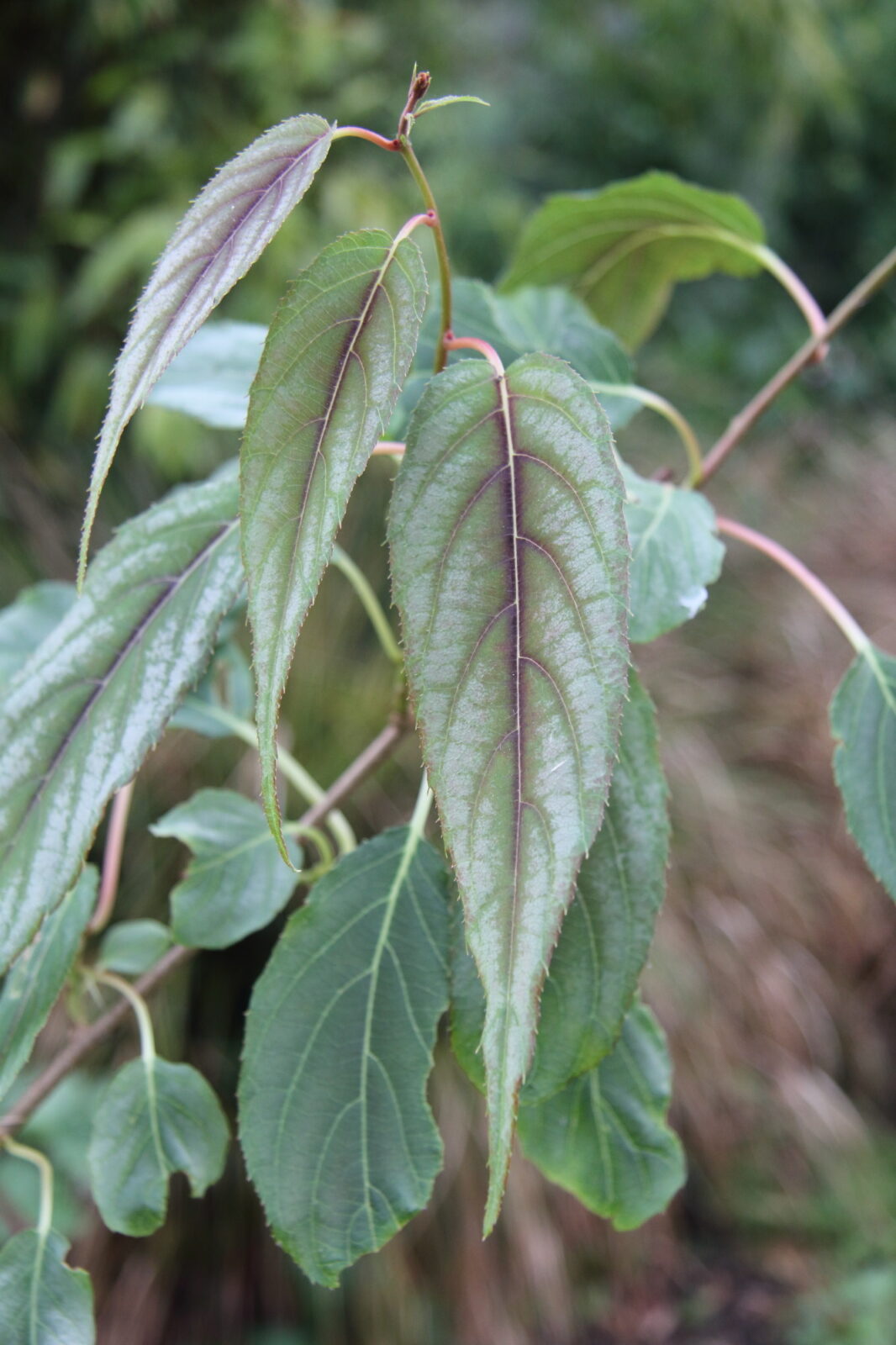 An Edward Needham collection from an unknown locality in China. A vigorous climber with foliage emerging splendidly red-brown tinted, turning to green with red-brown tints and then green with pale silvery-grey markings. Scented white flowers in early summer. There are many Actinidia species in China and this is one of the very finest for foliage. Previously sold here as Actinidia sp. from China.