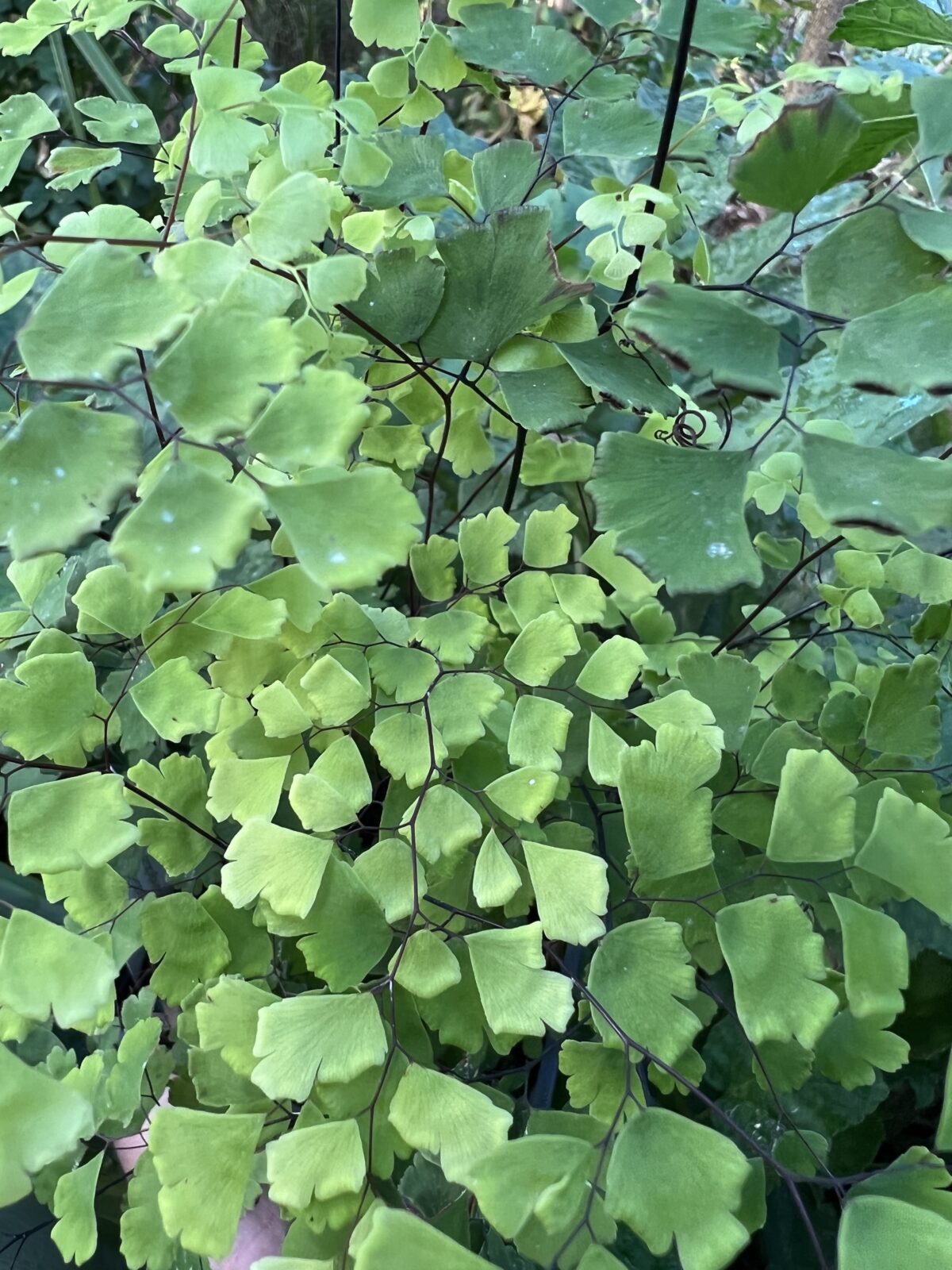 A rarely grown hybrid of A. capillus-veneris, with greater vigour in the garden, making a fine gently expanding patch of lacy evergreen Maidenhair fronds to about 40cm tall. More erect than A. capillus-veneris and with larger frond segments, this is also hardier, being fully hardy in the UK. Shade and well drained humusy soil; fairly drought resistant once established.