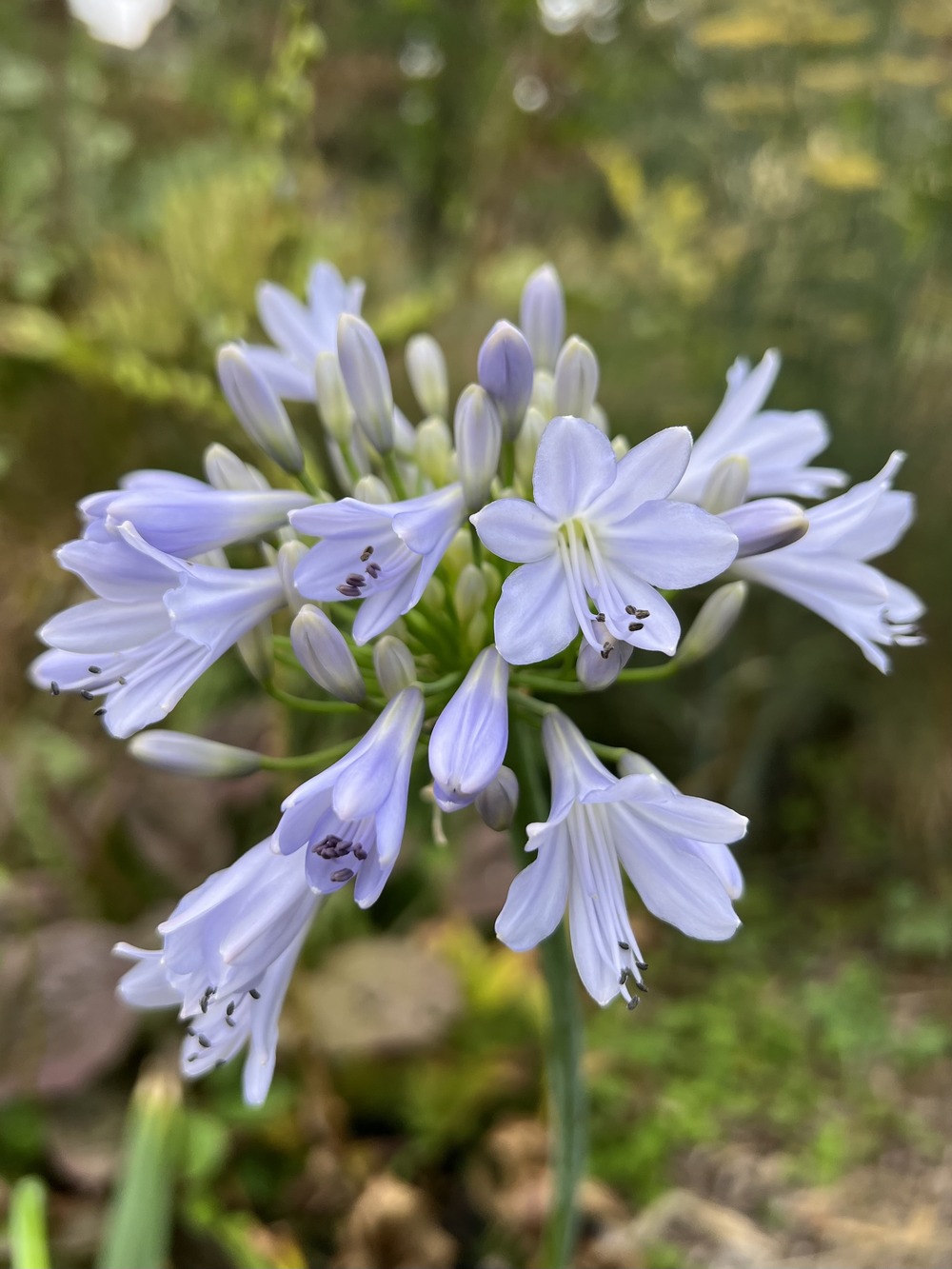 A late flowering pale-blue clone selected by the late great Eric Smith, which is one of the last Agapanthus to flower in late summer, Aug-Sept. The broad glossy leaves are evergreen if winters are not too harsh, but can be deciduous if very cold. Height 1.2m. For sun and well drained soil.