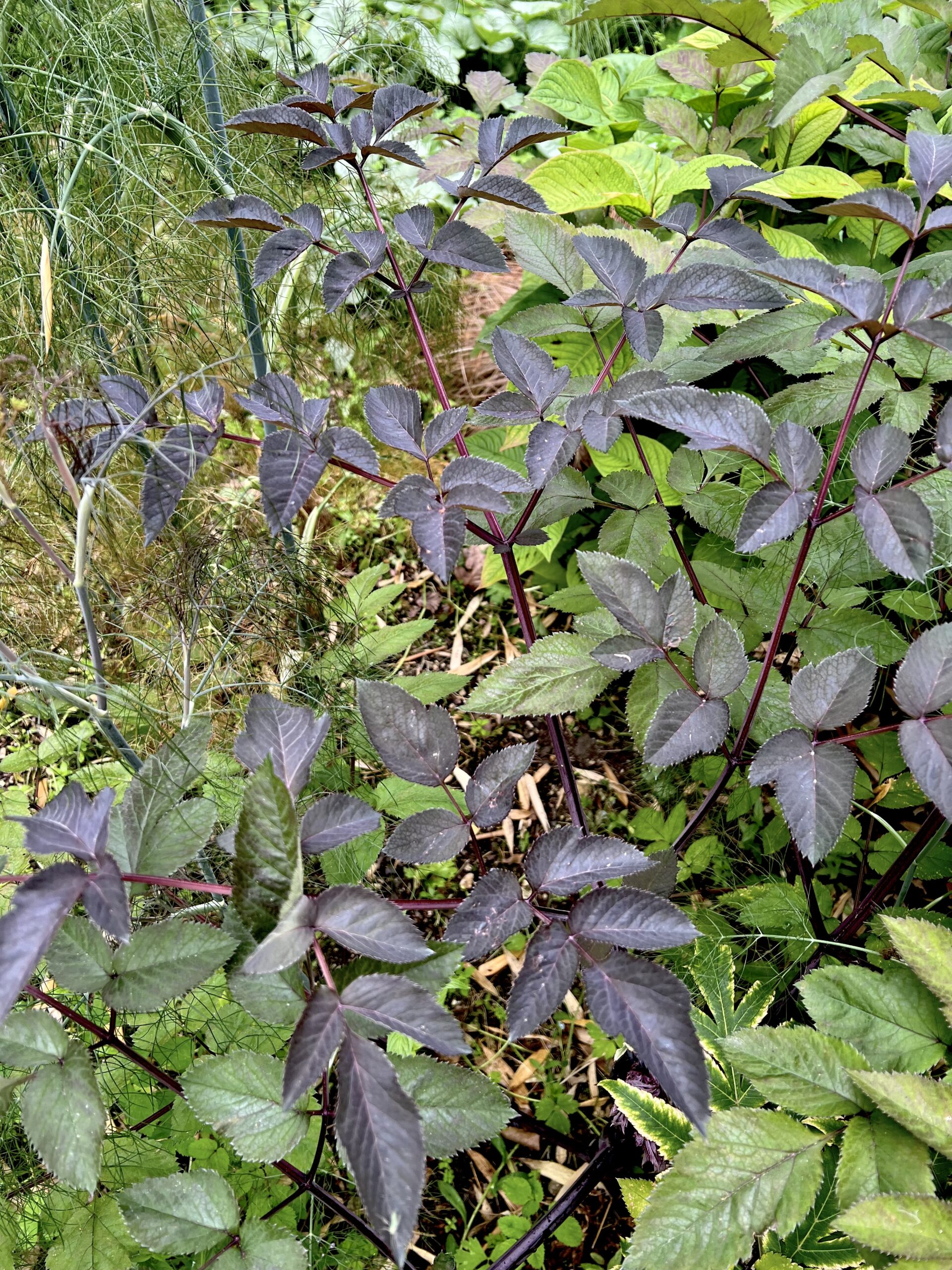 A gently self-sowing native biennial with, in this form, dark-purple washed foliage and grey-pink umbels of flower on stems to 75cm in summer. Sun or semi-shade. Easy, especially if left to self sow with gay abandon into all the superior positions in the garden that you haven't yet considered.