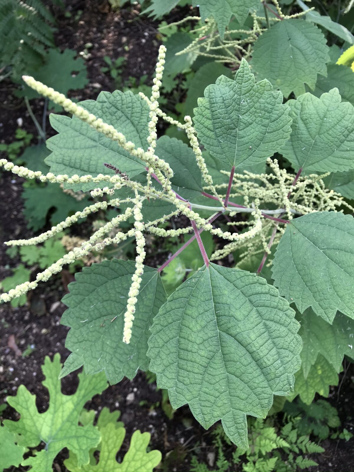 A non-stinging nettle relative with splendid foliage. This is a genus of fine foliage plants and this species is no exception, especially in this clone with soft caramel-pink tints to the new foliage, expanding to rounded and strikingly toothed softly hairy leaves. Pipe-cleaner-like white flowers in early autumn. Makes a bold clump of upright stems to 1.5m high and wide. Hardy, for semi-shade or shade.