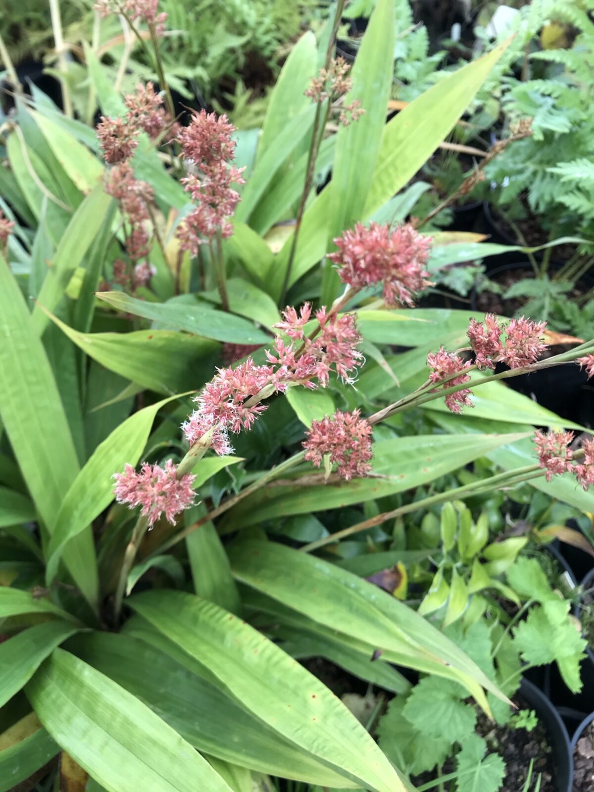 A superb and highly ornamental large sedge with very broad pleated foliage to 5cm across and pink flowers in summer in vertical inflorescences that last for months. Makes a good clump in well drained soil that doesn't dry excessively. A collection from Fansipan Mt., N. Vietnam.