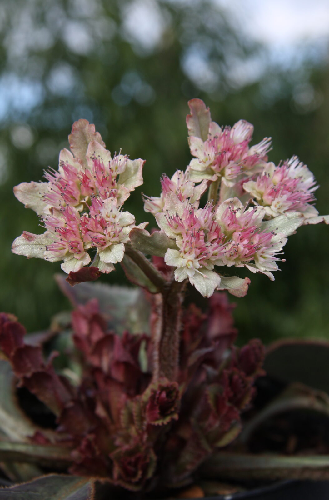 A plant for moist shade, with large grey-green bristly leaves, which bronze a little in winter, and large red-pink tinted white flowers in winter/spring, lasting for weeks as they set seed. Spreads by runners which emerge heavily washed in deep red, so forming a colony. Great ground-cover and extremely easily removed if spreading too far.