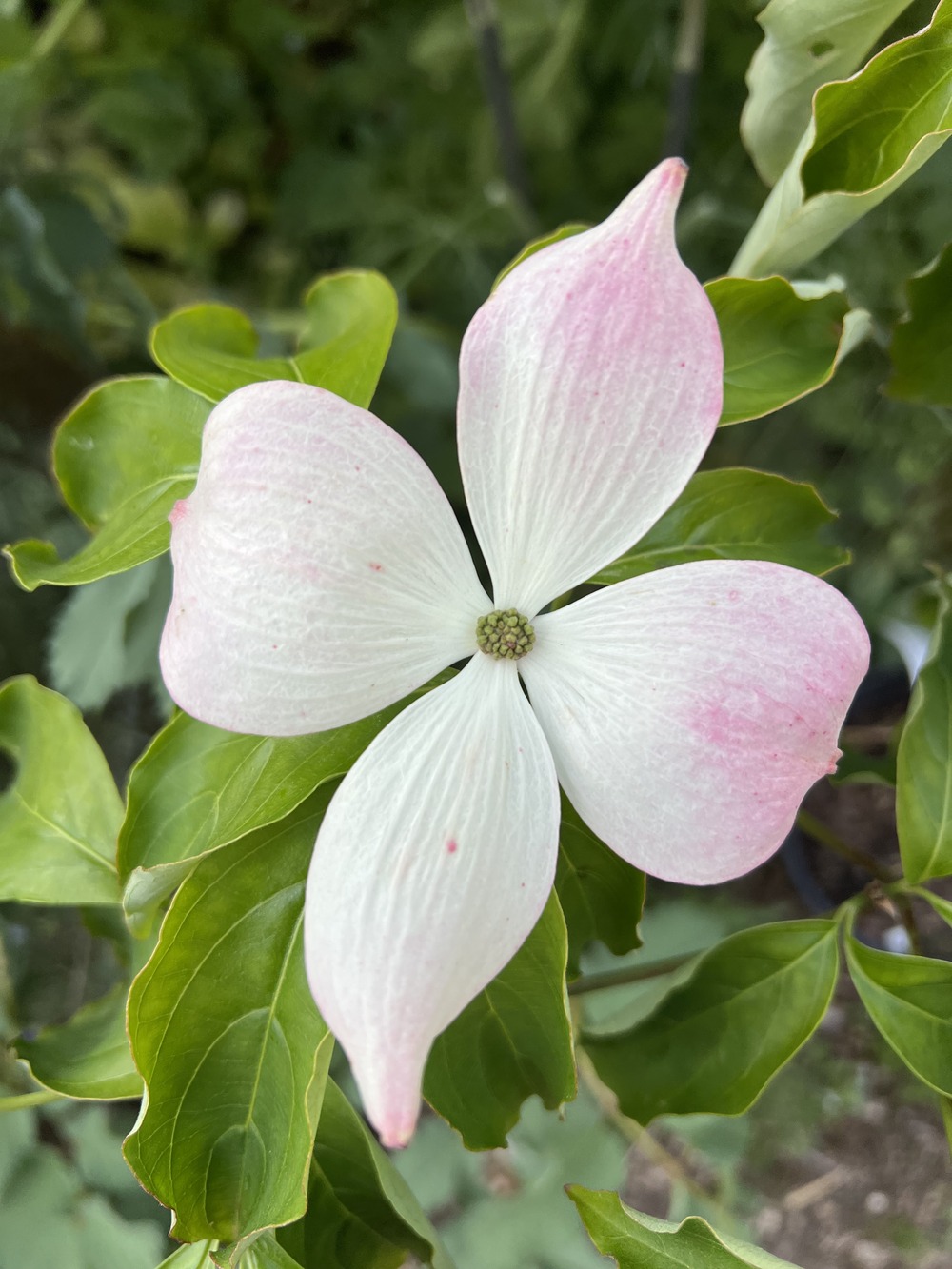 Another product of the Cornus breeding program of Elwin Orton of Rutgers University, New Jersey, this hybrid of C. kousa and C. florida visually leans toward the former parent. Bearing a massed display of white to soft pink bracted flowers in mid summer on a rounded small tree to about 6m tall with spreading branches. Potentially excellent autumn colour in shades of red and orange. For sun or part shade and preferably not thin chalky soil.