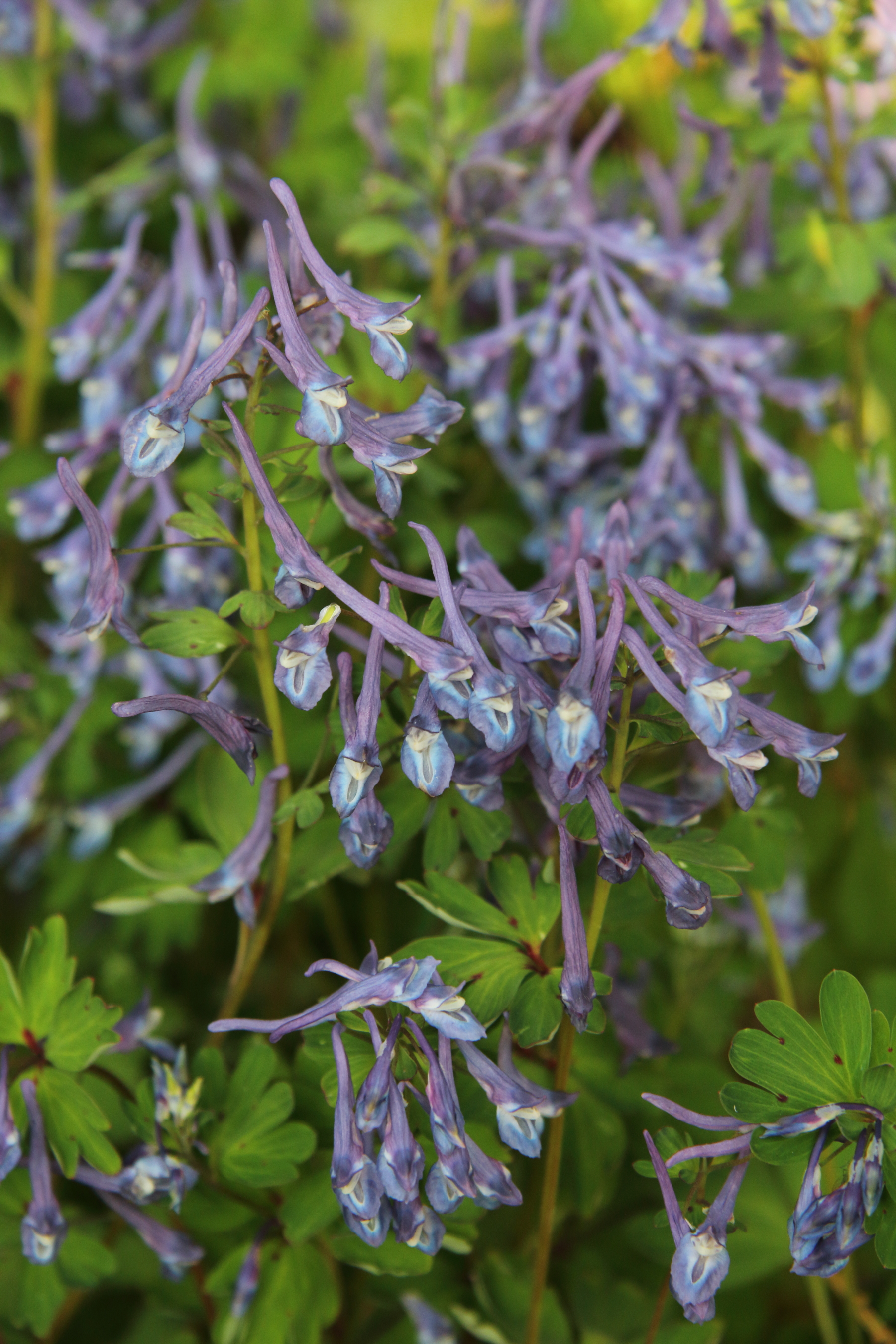 A rarely offered species from Sichuan, China, making a fairly vigorous specimen with a mass of deliciously scented flowers in spring/early summer; their mouths are bright electric blue and their tales are washed in purple-blue, giving an overall dusky-blue effect. To 30cm tall, this makes a good clump, with bright green foliage conspicuously marked with bright red spots. Dormant in summer, this prefers a humus rich relatively moist soil in semi or full shade. Very hardy.