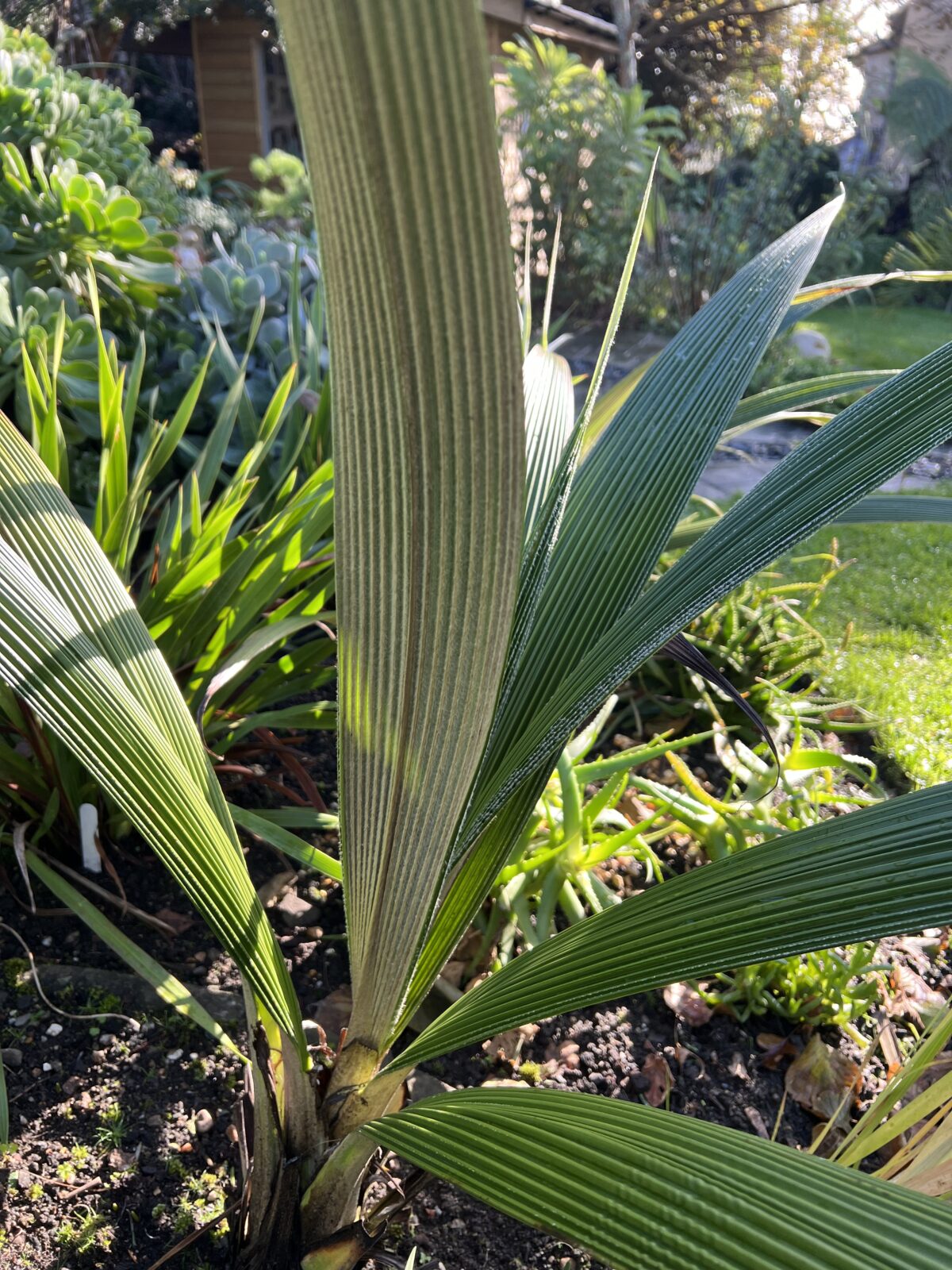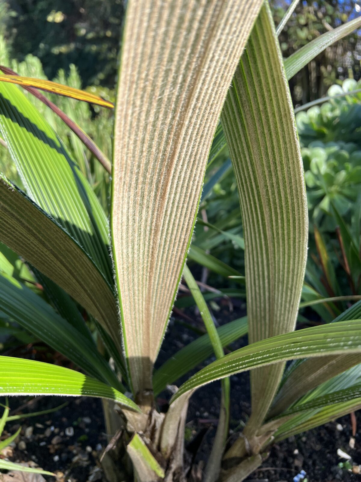 Appearing like a young palm with long linear-lance shaped corrugated evergreen foliage; deep green above and covered with pale beige hair beneath. This superb foliage plant was originally collected in N Vietnam, where it inhabits anything from rock ledges to bog edge. For milder gardens or superb in a pot, overwintered under cover. 1m.