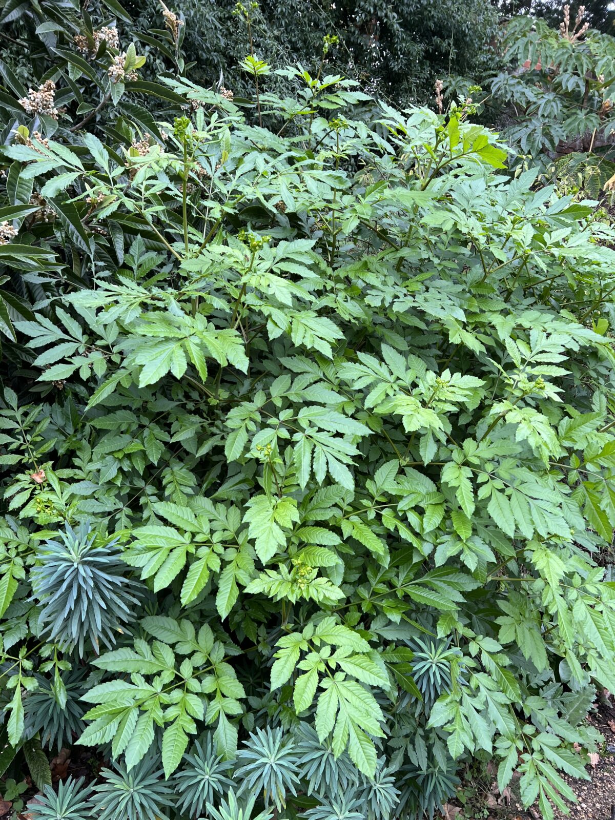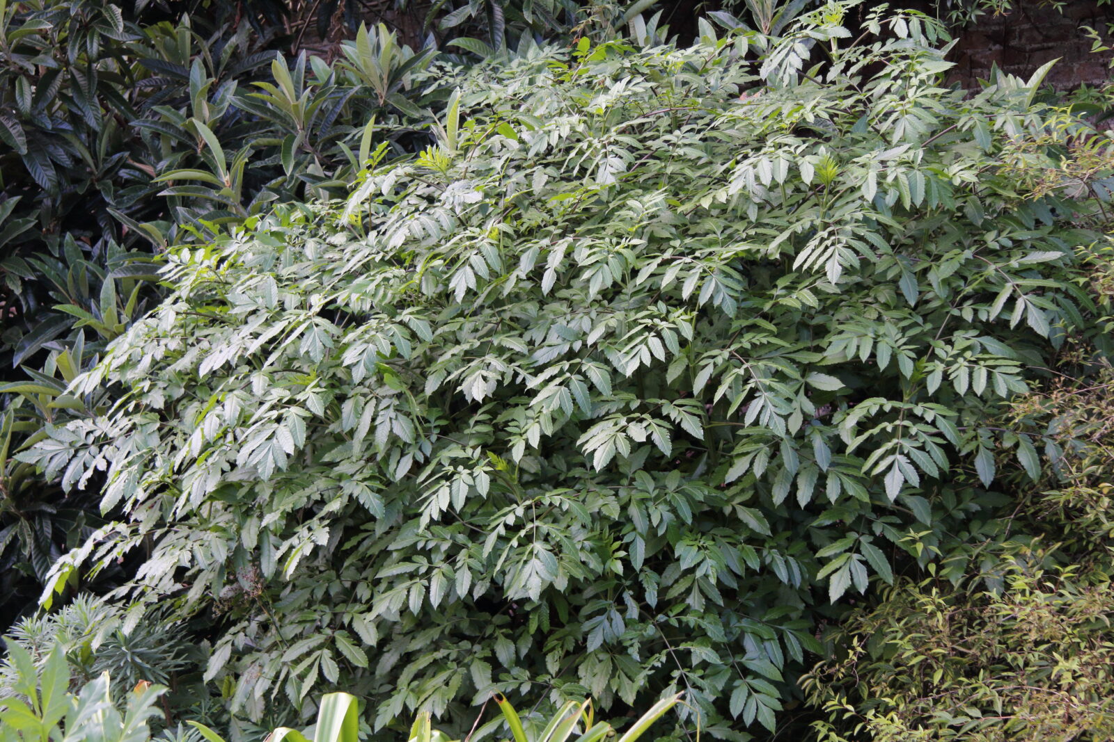 A new species, discovered by Nick Macer in NE Mexico in 2005. Particularly exotic looking large glossy green compound foliage is a notable feature, together with sturdy, fluted, wind tolerant stems. Pale lilac-pink flowers with a distinct central yellow star, to 2.5m above the foliage in late autumn/winter. Fully hardy if well established to at least -14c, if mulched, though I haven't bothered for over a decade. This has made a large dense clump here over the last 14 years (2022). The finest species for foliage.