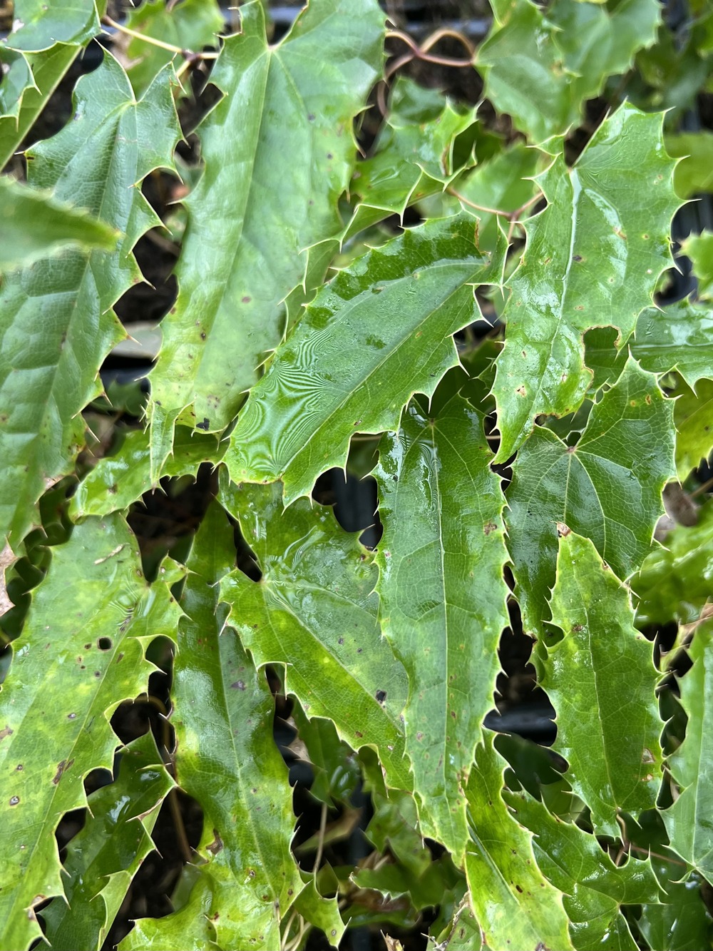Striking spiny long drawn out foliage with undulate edges emerges coppery-maroon before turning green. Fairly large pale lemon yellow flowers come at the same time in late spring. Humusy soil in shade, not too bone dry. Found wild in China by Darrell Probst and possibly a new species.