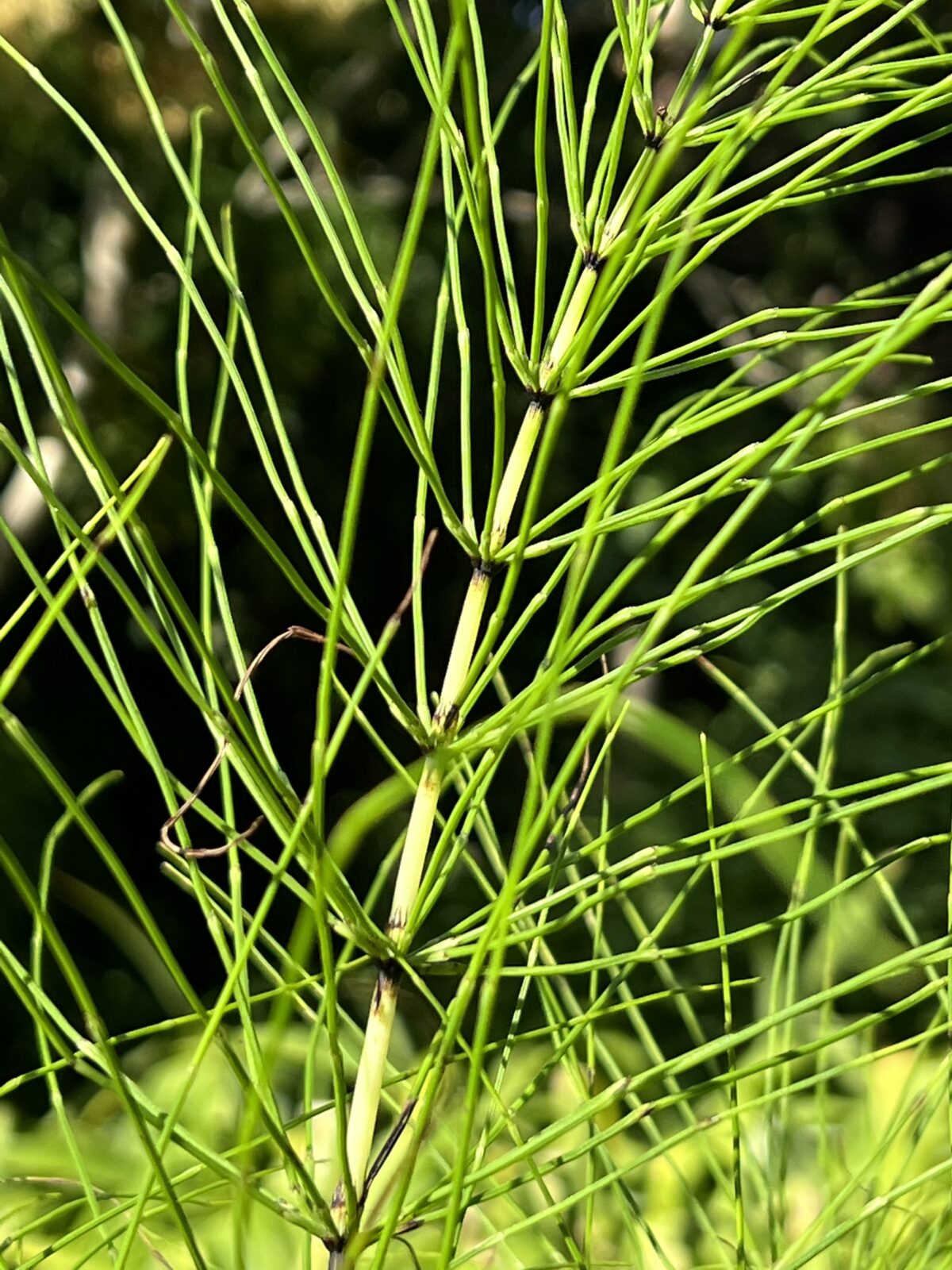 The tallest species outside tropical regions, the Great Horsetail is native to the UK and is capable of producing stems to at least 1.5m tall if well fed and moist. Magnificent dark-banded green stems clothed in linear, very fine foliage. Fertile stems rise to 45cm in spring before the foliage. Safest kept in a large pot, stood in a tray of water. Very hardy; for sun or shade.
