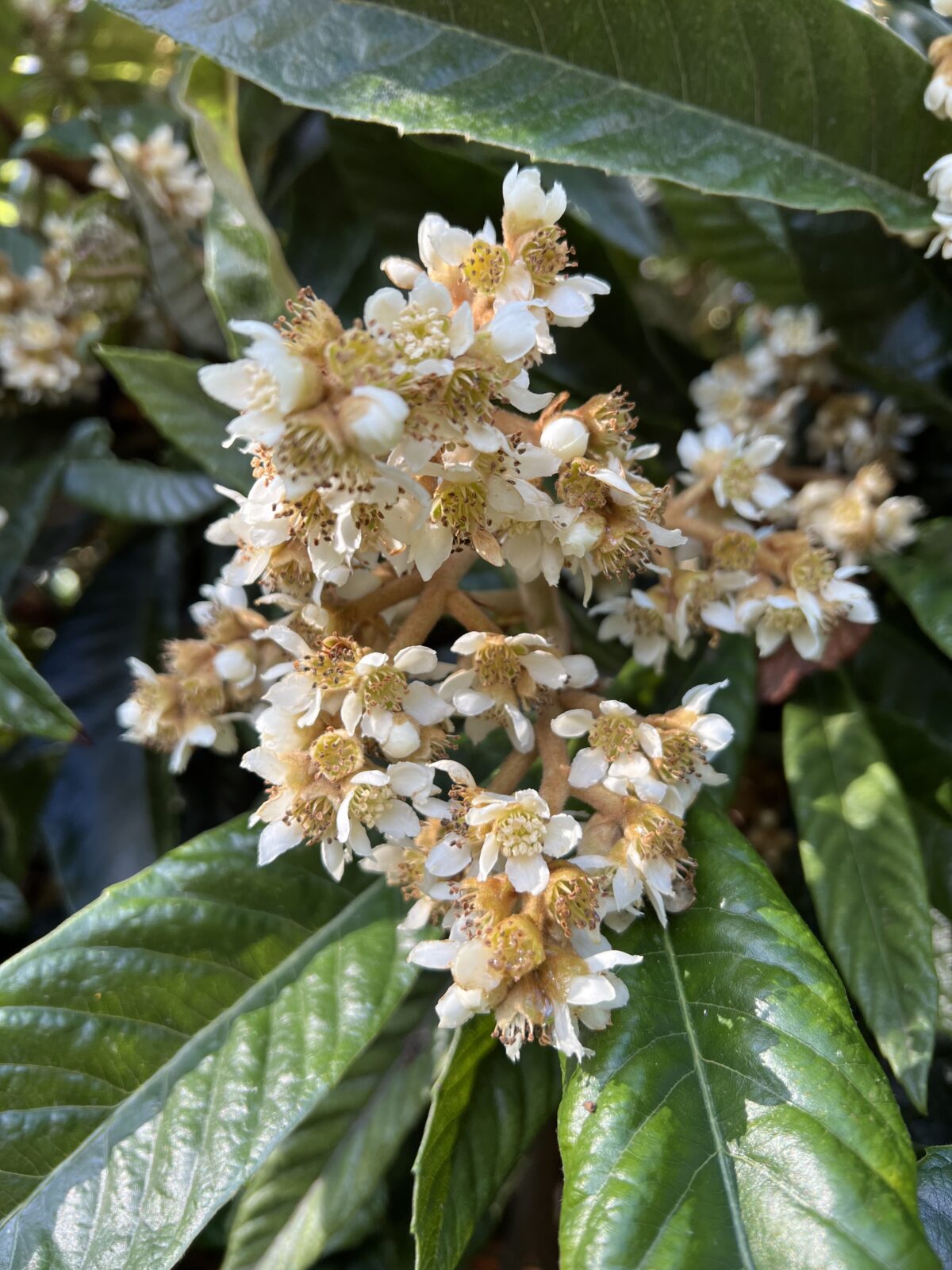 A new form, selected for hardiness on the continent. A small tree and one of great presence and exotic appearance. The evergreen leaves are corrugated, thick textured and with pale brown tomentum beneath, rich glossy green above and reach up to 30cm long. Heavily scented white flowers in terminal clusters produced in autumn after hot summers, followed by the most delicious soft-orange fruit the following summer, with a flavour like nothing else.