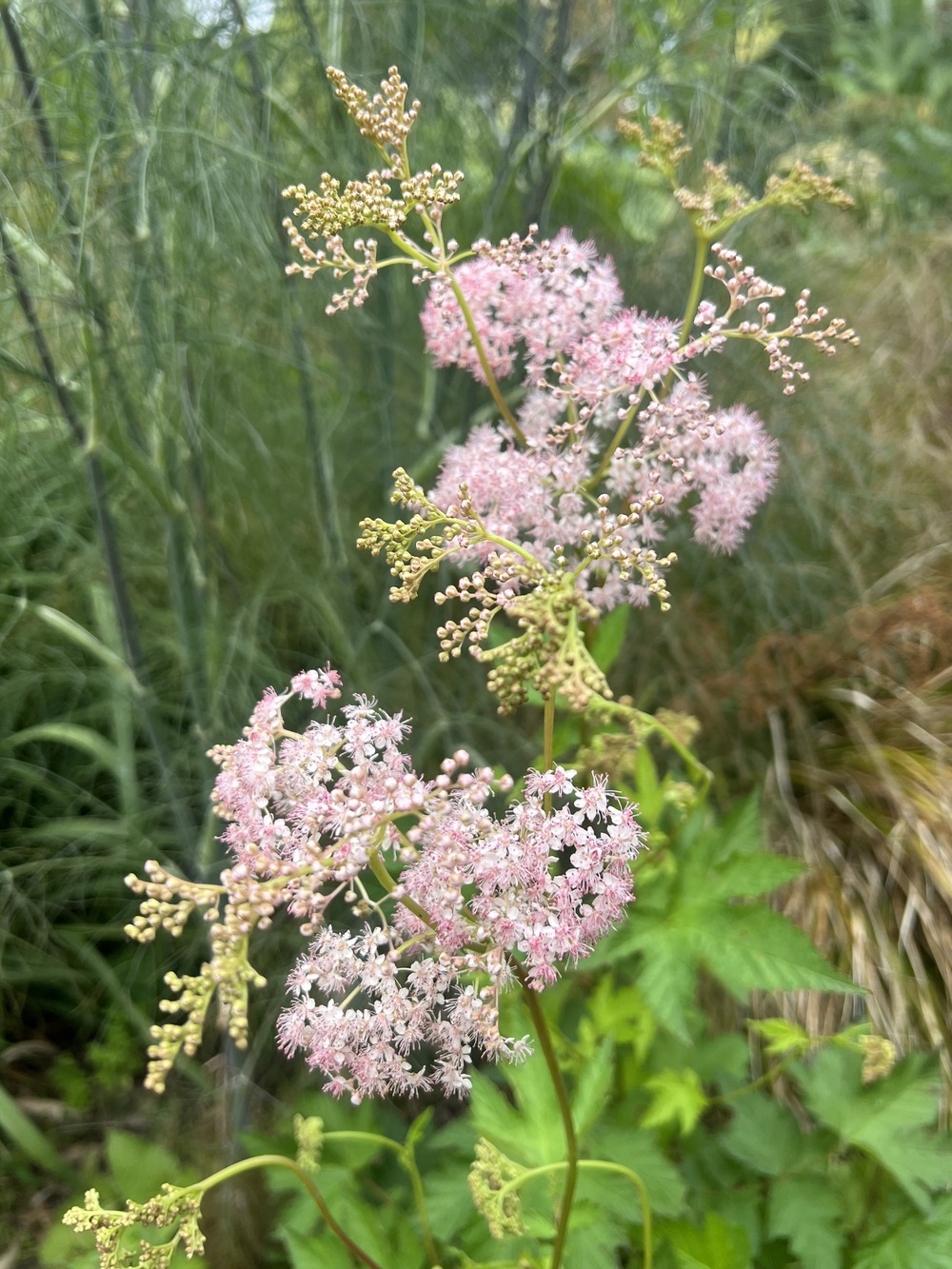 A scarce pink flowered form of our native meadowsweet for garden borders or wilder areas as long as the soil is moist. Pink candyfloss flowers in June-July on stems to 90cm. Moist soil, sun/pt shade. Tough and easy with good foliage to boot.