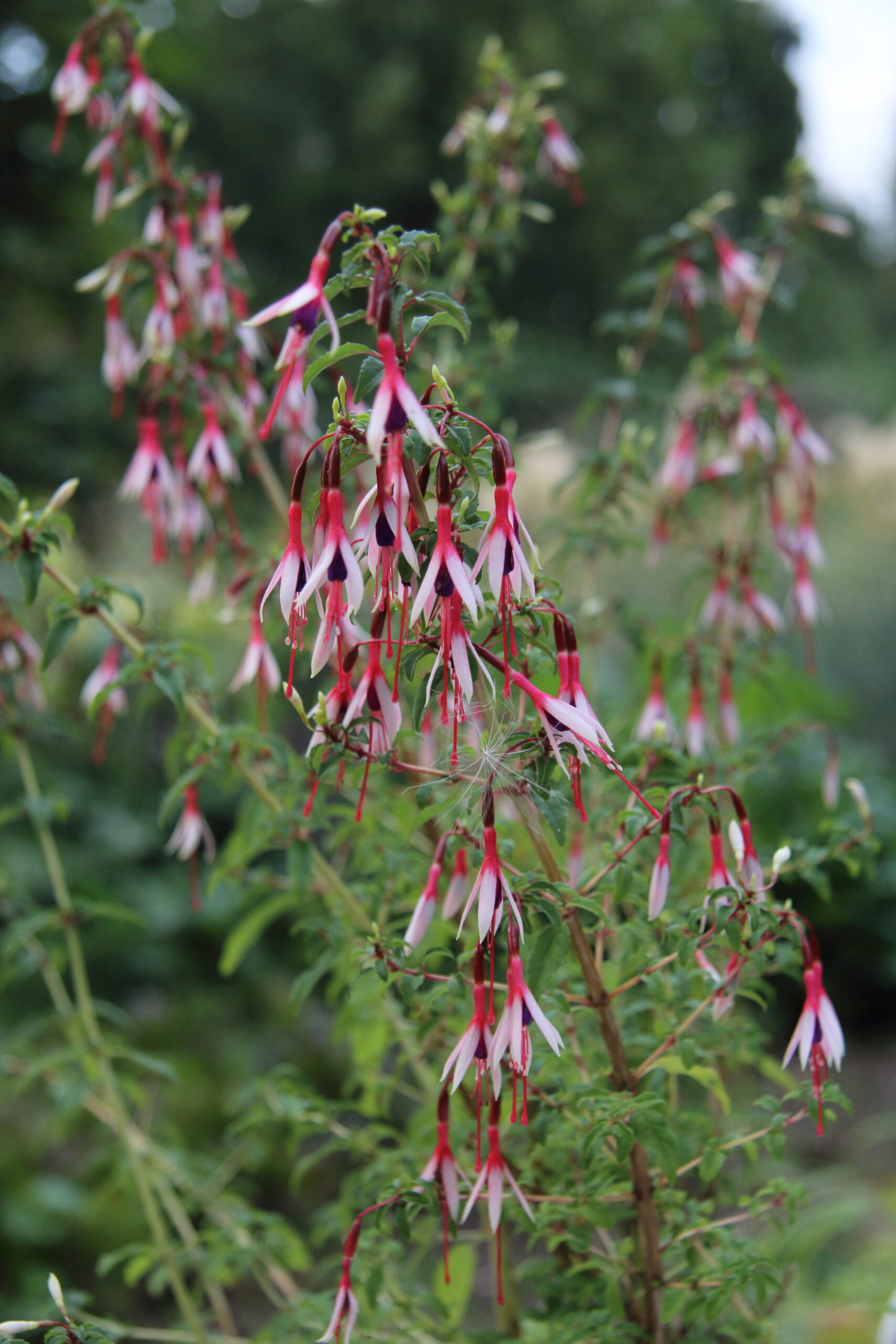 A relatively new cultivar, of delicate appearance with the very dainty, slim, tri-coloured flowers smaller than average. A form of this generally rather hardy species with the flowers a typical red-pink at the very top, with white sepals and exserted stamen protruding from a deep-violet corolla. Very similar to the cultivar 'Lady Bacon', but more delicate, with smaller leaves and flowers and darker violet corolla. A medium sized shrub for sun or semi-shade, flowering potentially from June to October.