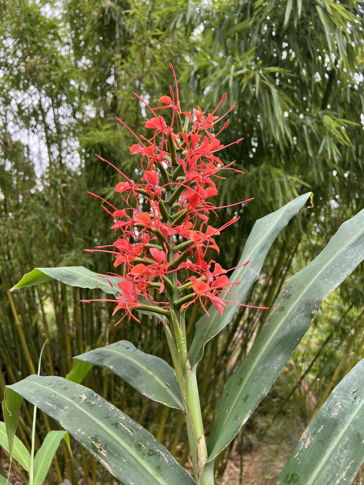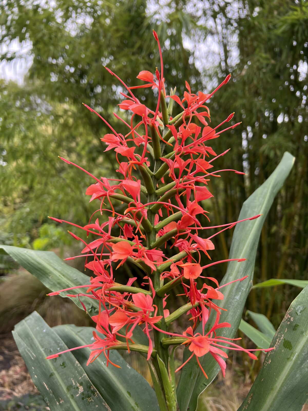 From Manipur, NE India, this new form has striking leaves up to 60cm long with a pale white-green stripe along the midrib, held in a particularly distichous 'ladder fashion' up the pseudostems. Makes plants to about 2m high. Vivid orange-pink flowers in late summer/autumn. Mulch over for winter or grow in a pot overwintered without frost.