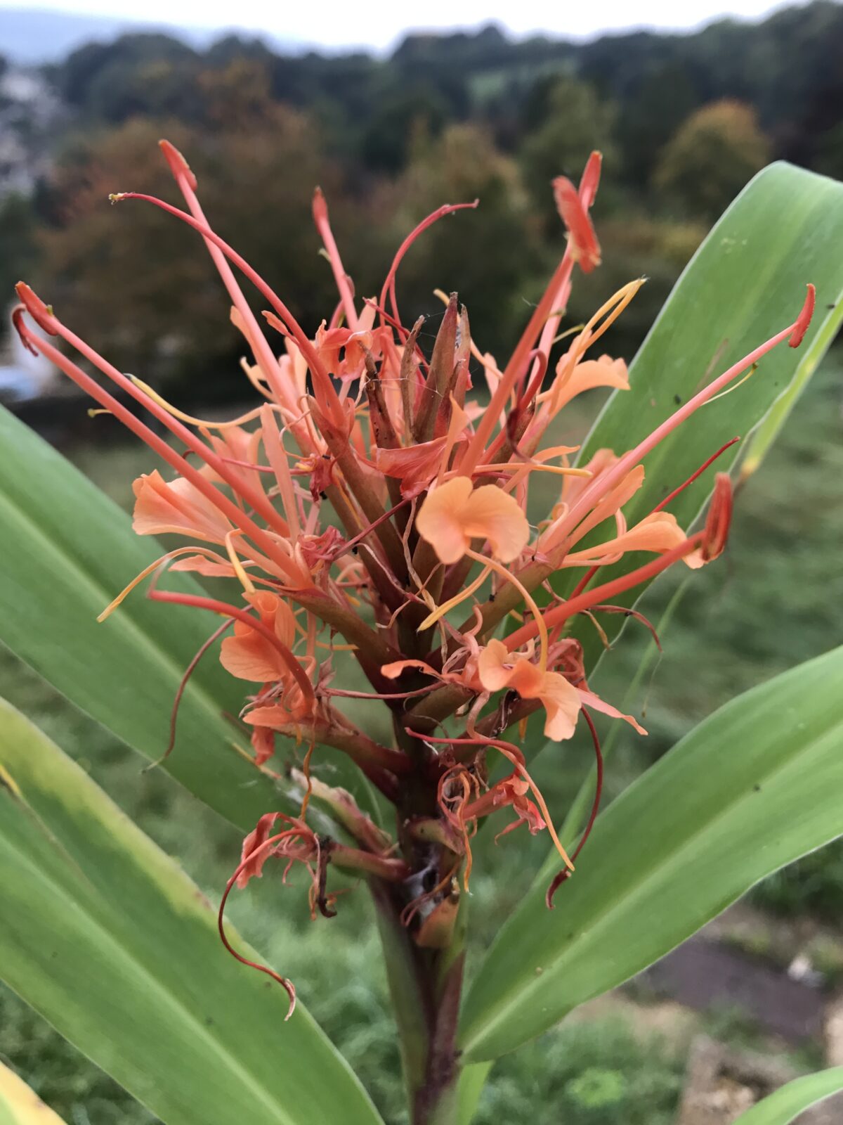 Recently found on Shillong Peak, N.E. India, this hardy and reliable ginger lily produces large spikes of vivid red-orange flowers over blue-green foliage in late summer. This flowers outside even in very cool, dull summers. Height 1.5m