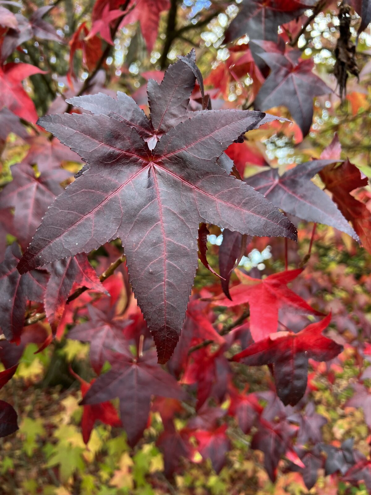 A famous old Hillier clone of this hardy medium to large deciduous tree with maple-like foliage, grown prinicipally for its autumn colour of blackish crimson-red. Strong growing, especially on moist soils, though perfectly tolerant of dry limestone in my experience, as here in the Cotswolds. Fully hardy and easy in most places, except shallow chalk.