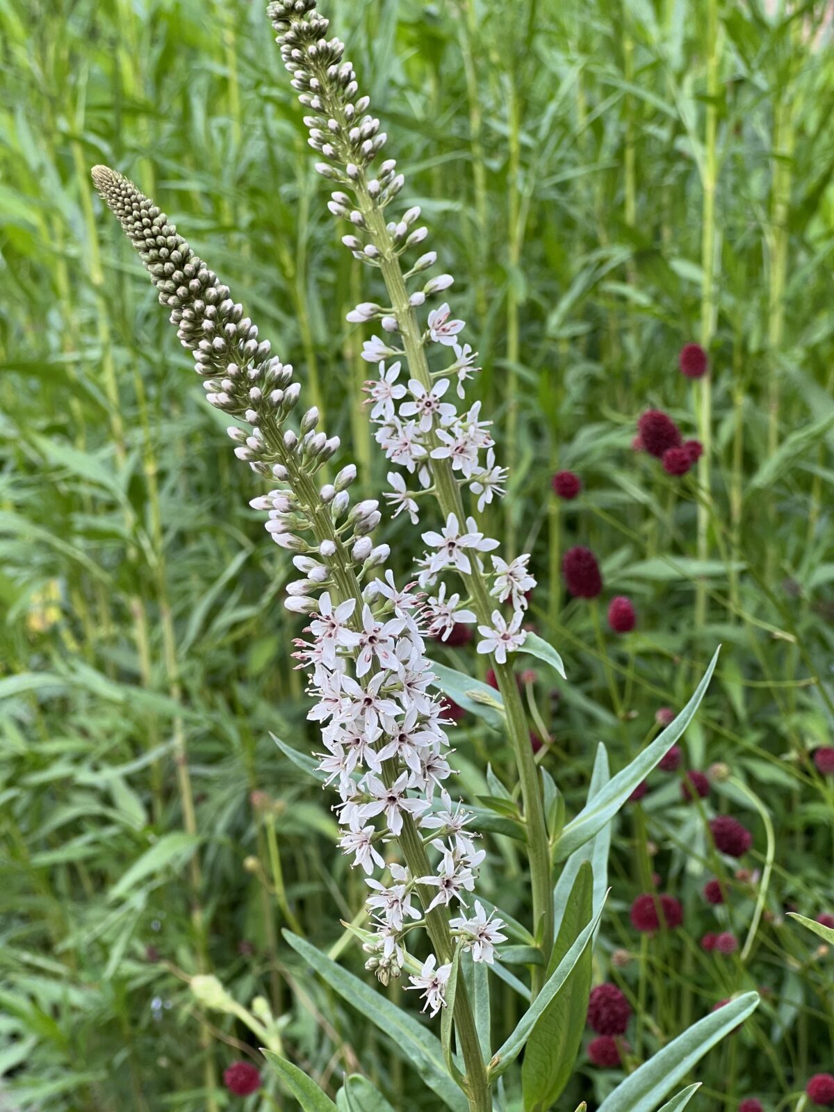 Diffuse spikes of pure white flowers to about 1m in mid-summer, above narrow glaucous foliage. A native of Southern Europe and N. Africa. For sun or part shade in soil that doesn't get too bone dry. Very elegant.