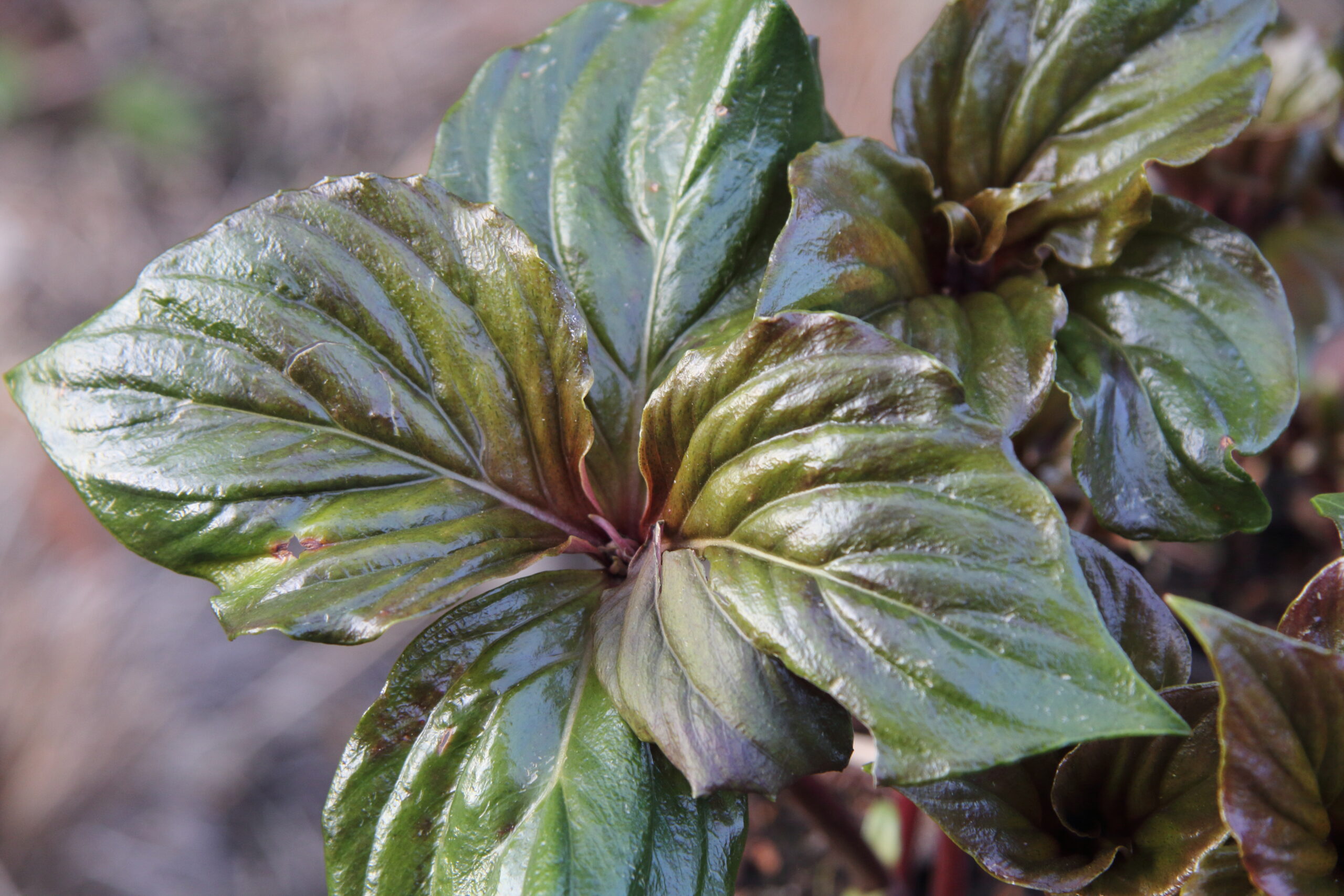 A new introduction (the first?) of the typical variety of this most handsome of non-invasive evergreen ground cover perennials, from Guizhou, SW China, 2011. Four broad (usually) broadly obovate to elliptic shiny dark-green leaflets per rosette with a boss of rich yellow flowers at their centres, on low stems to 30cm. For shade. Rather different from the var. stenophylla and doesn't fill out as fast.