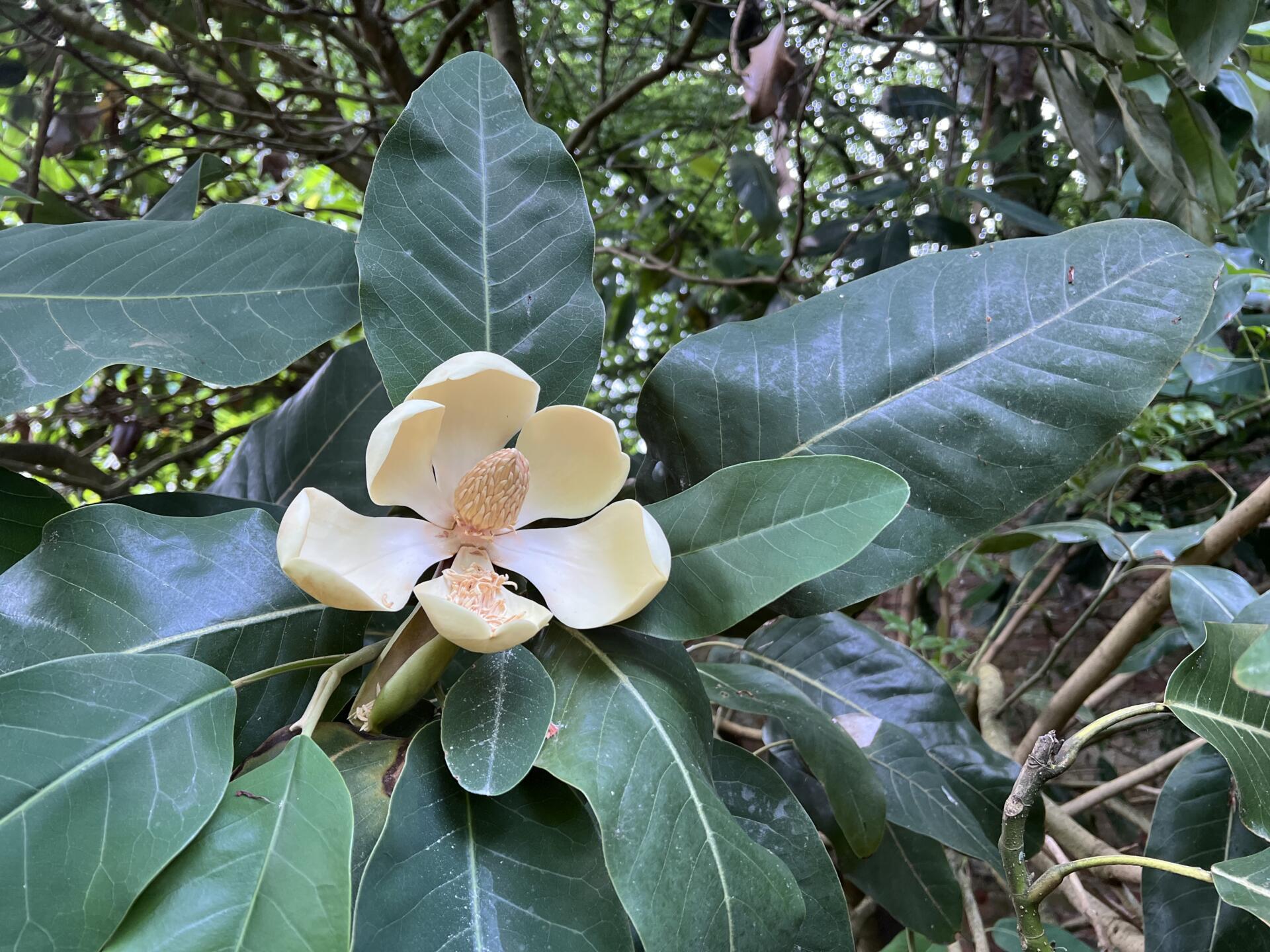 One of the finest broadleaf evergreens growable in this country. A truly magnificent small tree, best grown against a wall in all but the mildest areas, bearing huge sea-green leaves matt above and paler beneath. Parchment coloured, slightly fragrant flowers to 20cm across open in the evening, through late-summer and autumn. Very tolerant of limey, even chalky soils.