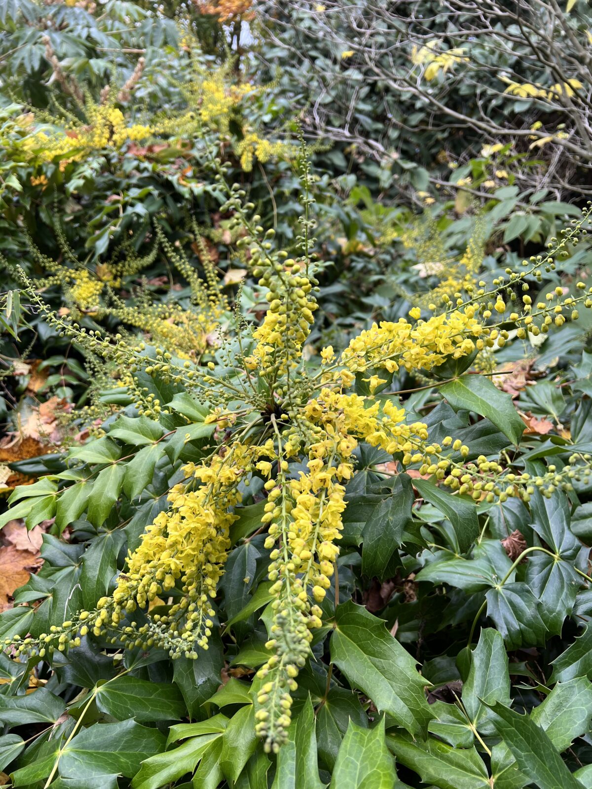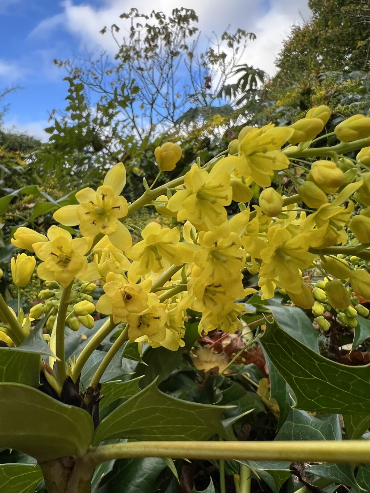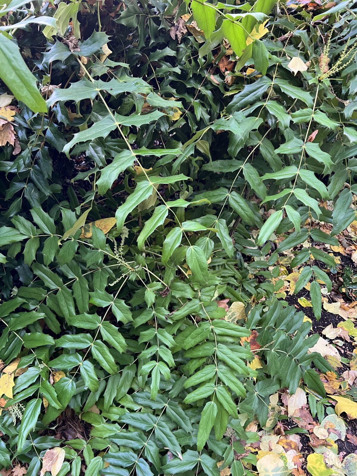 An exceptional hybrid with superb parentage: M. japonica gives the hardiness and intense fragrance while the rare M. siamensis (duclouxiana) offers huge drooping foliage with widely spaced leaflets. Autumn/winter flowering with racemes of individually comparatively huge, soft-yellow, exceptionally sweetly and powerfully scented flowers. Makes a wide medium sized shrub to about 2m tall. New growth is maroon tinted. Rarely available for no good reason, like so many excellent plants. Worth growing for the foliage alone.