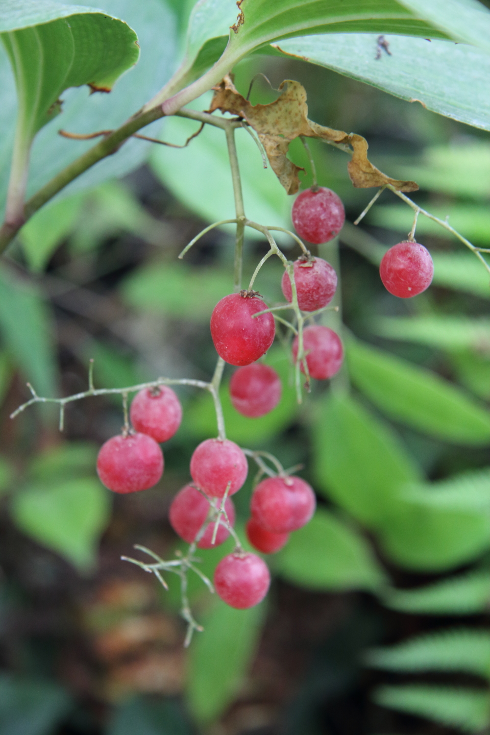 Not much of a giant at 30cm tall, but twice the height of the dwarfest forms, this is a find from Manipur, NE India. A deciduous woodland perennial with arching leafy stems terminating in a zig-zag inflorescence of maroon and green flowers in early summer, followed by red orbicular fruit in autumn. Shade and humus rich soil.
