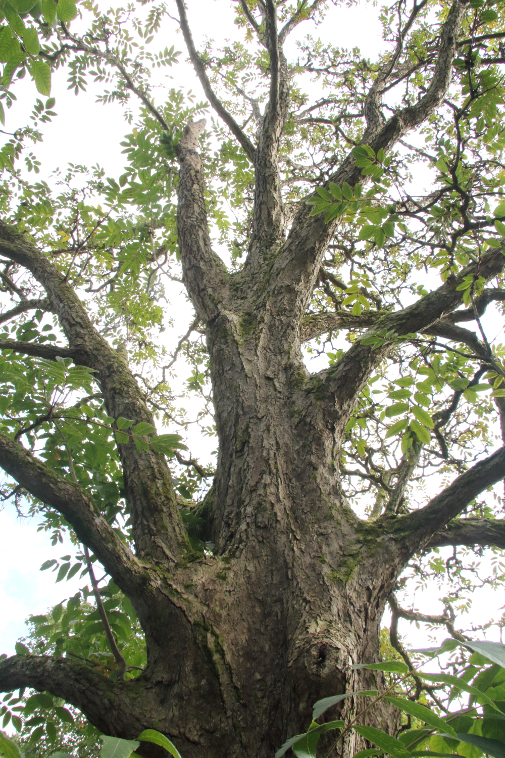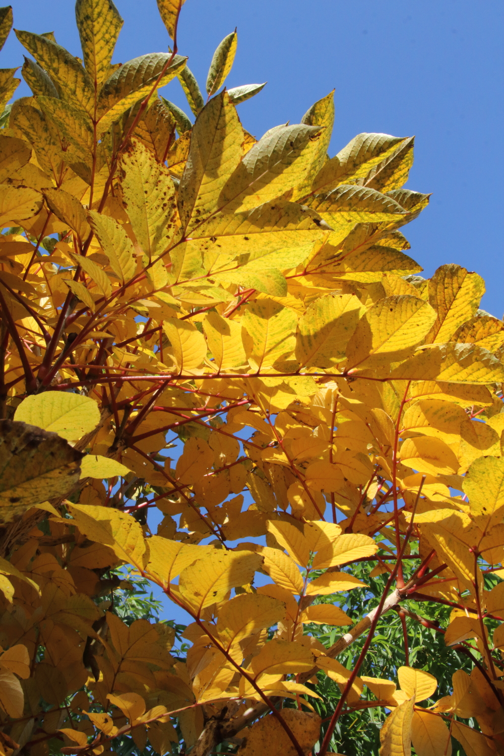 Here's a rare opportunity to purchase a most desirable small Chinese tree. A plant of striking appearance, with very large pinnate foliage on crimson stalks, turning vibrant rich-yellow in autumn in this form. Panicles of white (or green) flowers up to 45cm long are produced in early summer, followed by marble-sized fruit, starting violet-white and turning red, then black. Twigs are very stout and rigid, producing a particularly distinctive winter silhouette and the trunk bears a rugged bark. Hardy and tolerant, for acid or alkaline soil.