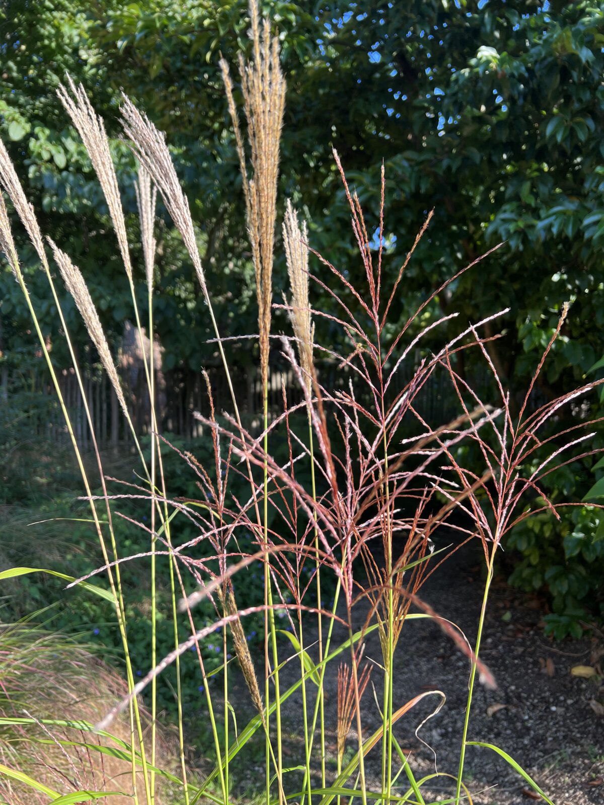 A virtually evergreen species in our climate with elegant narrow arching foliage reaching 90cm high on an upright clump. Flowering stems rise clear of the foliage to about 2m, topped by arching pinky-white plumes of flower early in the Miscanthus season in July-Aug. Sun or semi-shade. Hardy.