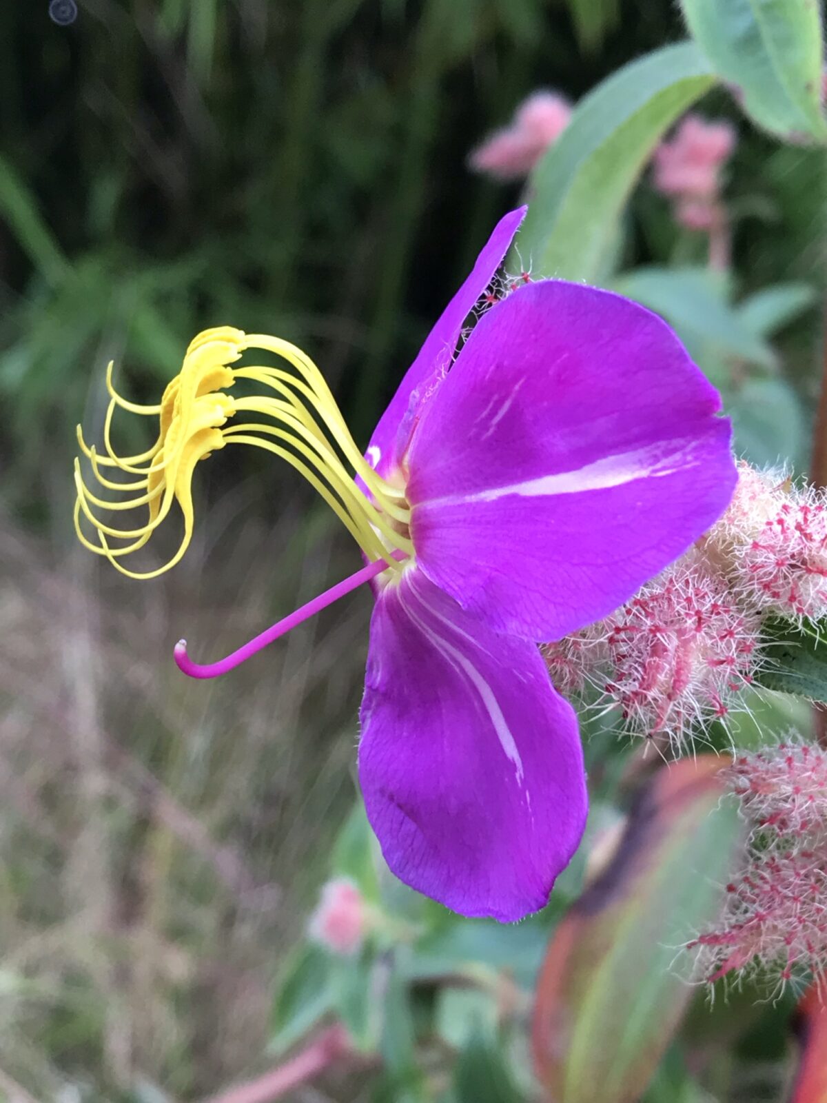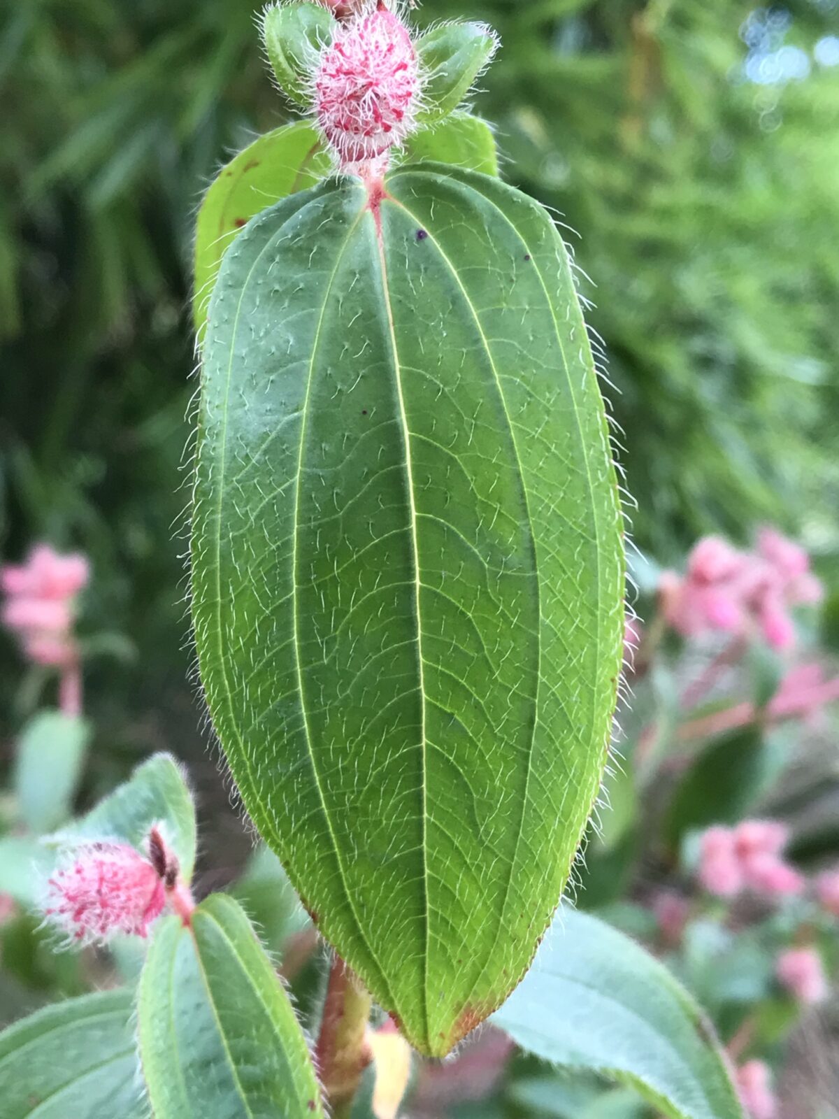 Collected originally on the Cangshan, Yunnan, SW China at 2470m this promises to be hardy in the UK. A Tibouchina relative with terminal heads of vivid purple-pink flowers, each with a highly conspicuous set of long bright yellow stamen at their centres, borne in summer. Handsome foliage has impressed longitudinal veins. A subshrub, dying to the ground each year and making stems to 1m.