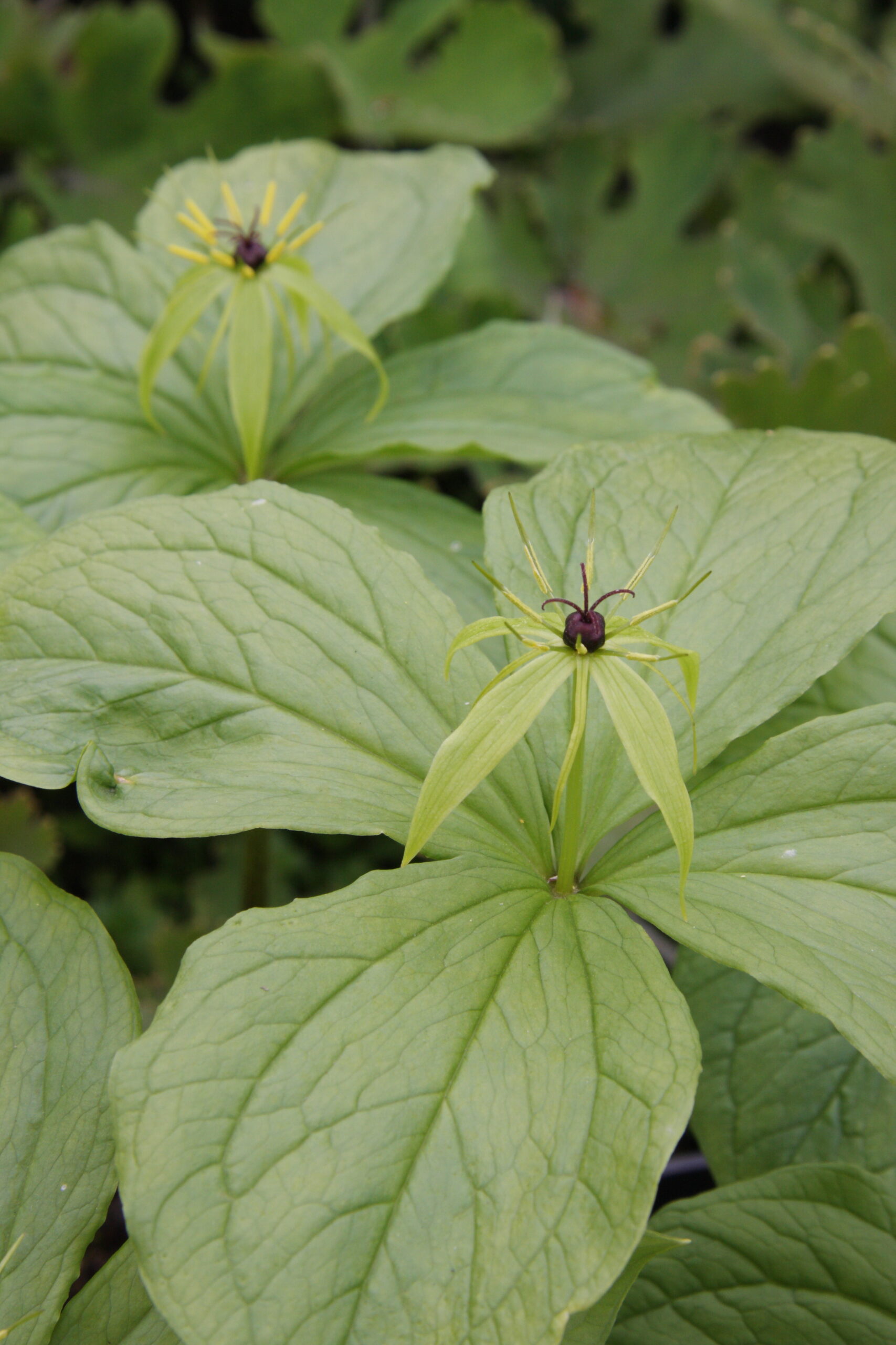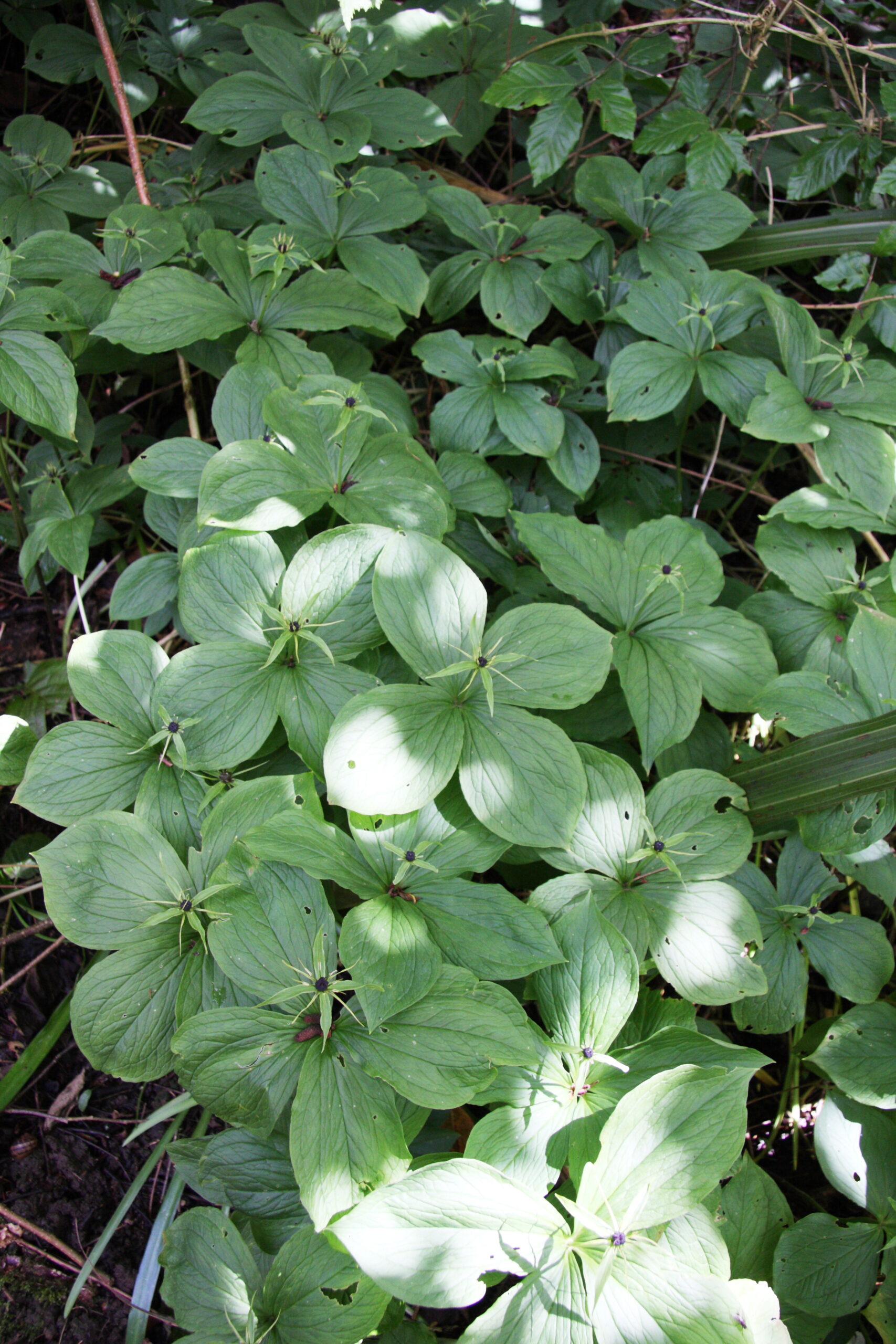 Herb Paris. Our lovely rare native, found in ancient woodland, and perfectly suited to a semi-shaded spot in leafy soil in the garden. Very elegant green flowers on stems to 50cm, effective from May to Aug. Black berries follow.