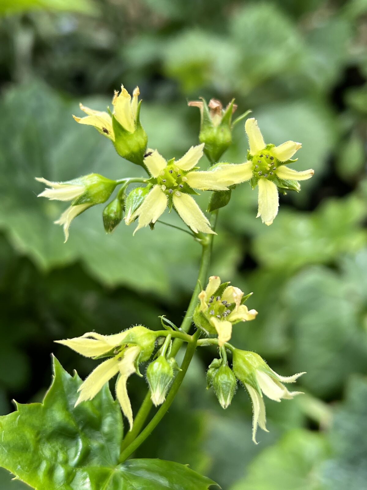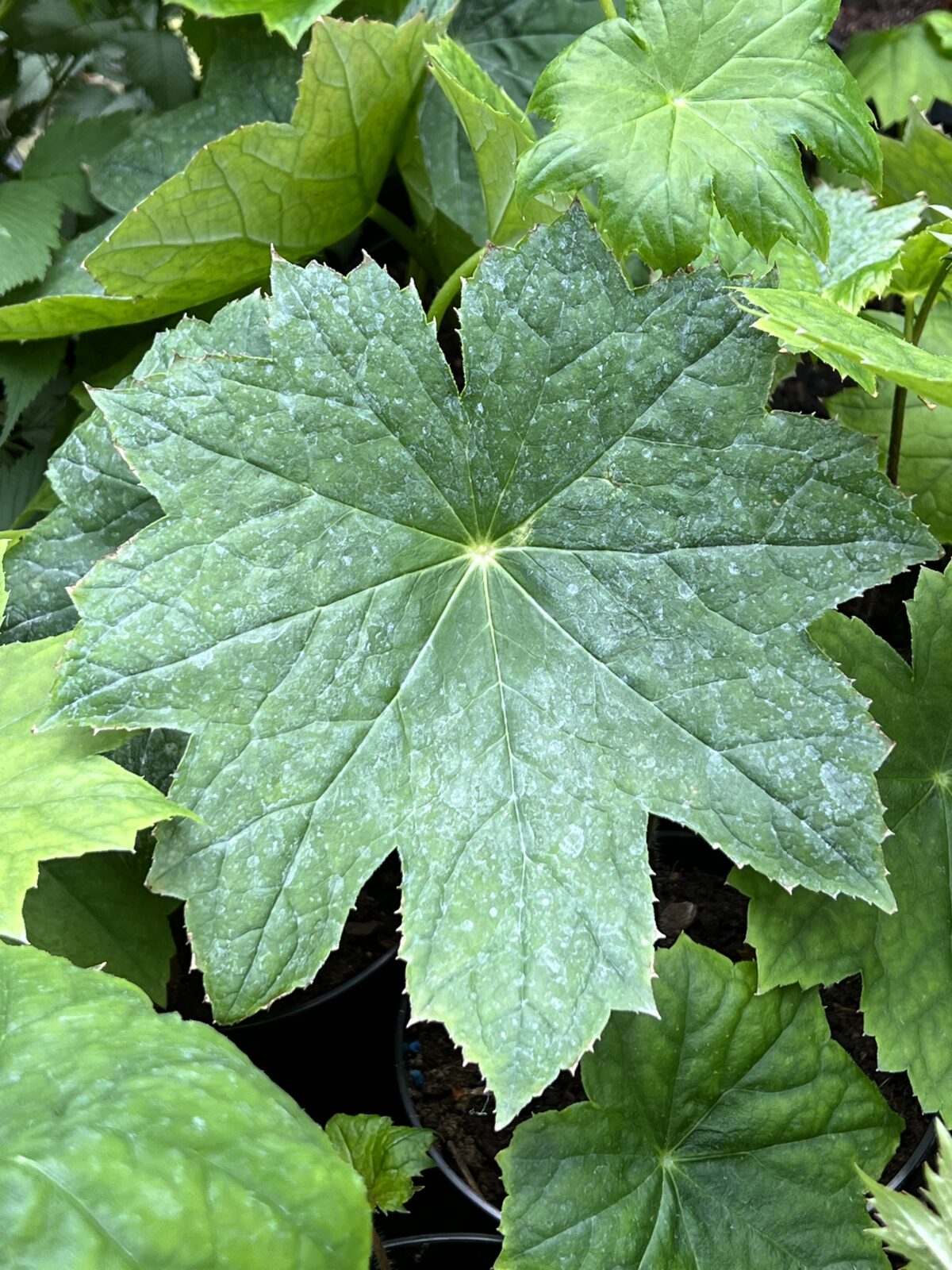From the shady moist forests of Japan, this woodlander is grown for it's excellent broad, lobed foliage and creamy-white to softest pale-yellow shuttlecock flowers in early summer which rise above the leaves. Makes bold clumps and is an excellent contrast to delicate foliage, such as ferns, in the woodland garden or under trees or large shrubs in moisture retentive humus rich soil. Hardy.