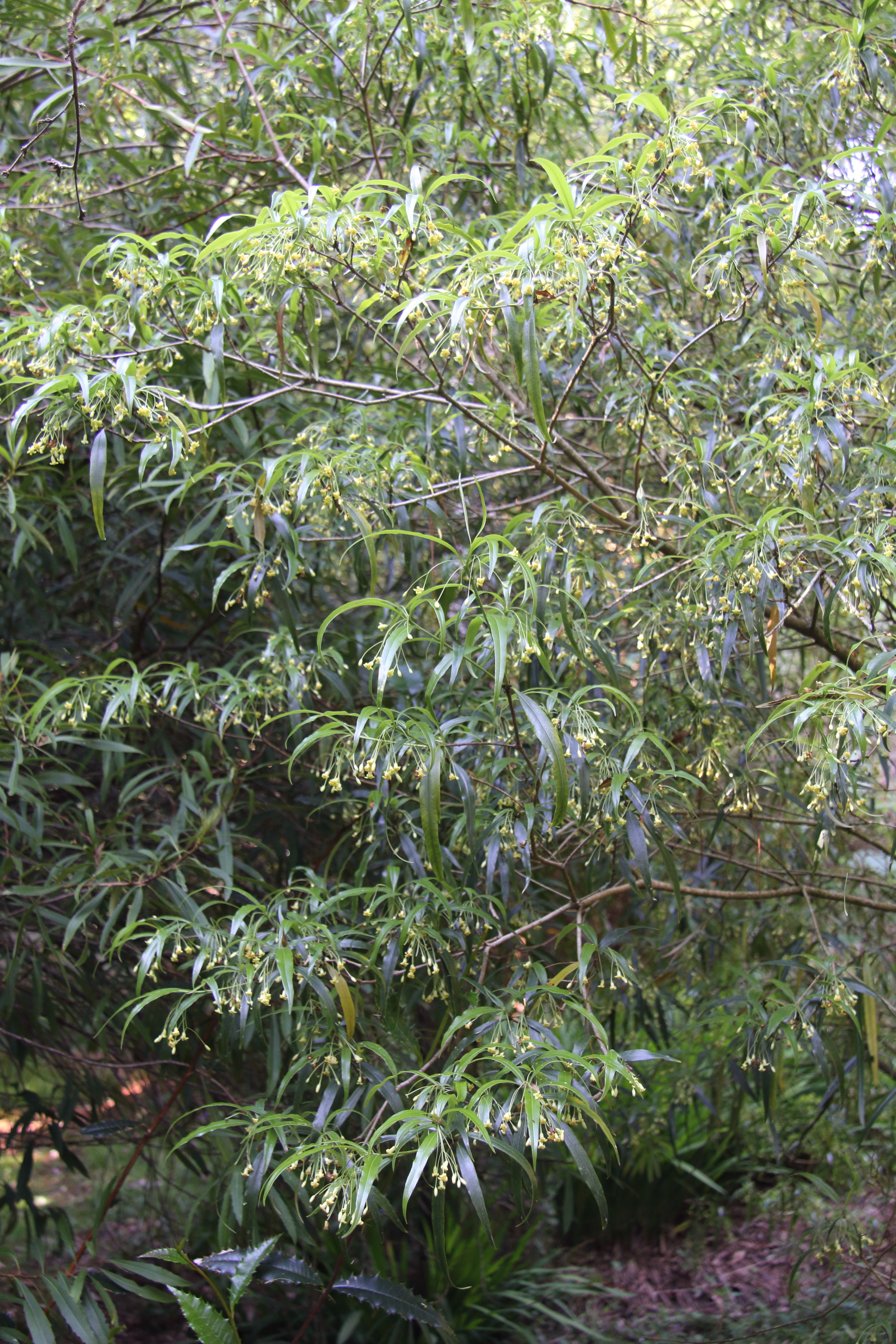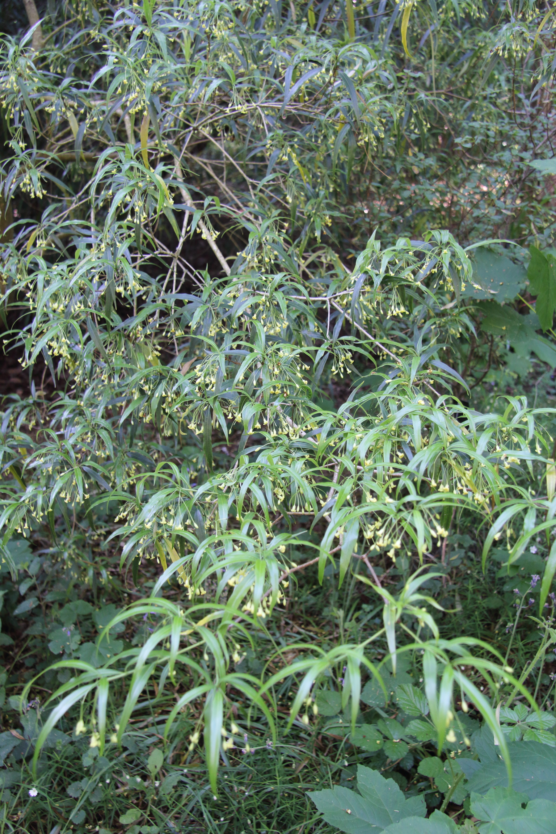 From the mountain forests of Taiwan, this extremely elegant evergreen shrub is one of the finer introductions of recent years. Long very thin dark green leaves up to 20cm in length arch out from the stems and reach their longest in light shade, though the plant is happy in full sun. Fragrant pale yellow flowers on long thin curved stalks in June. To about 2m tall?