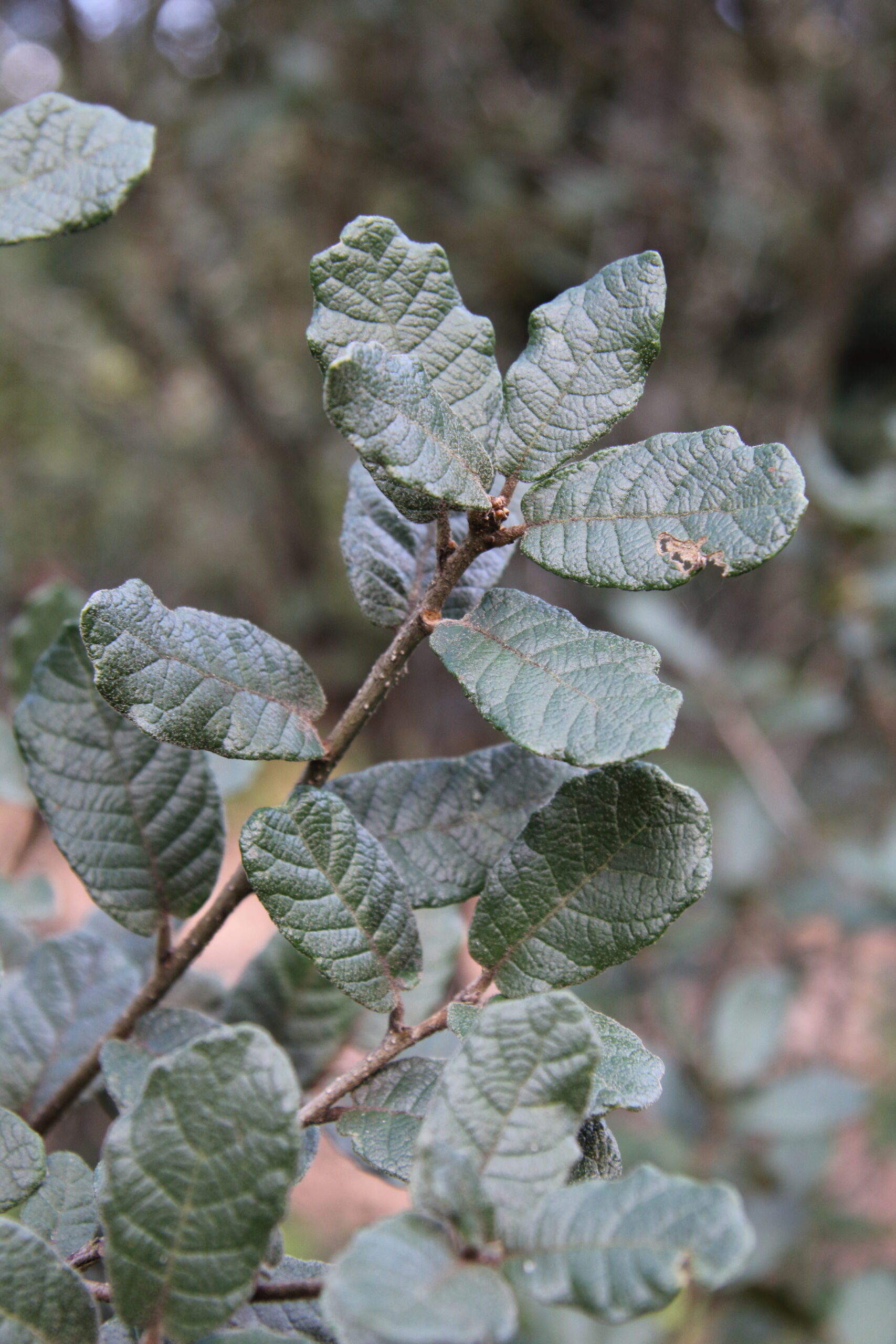 This evergreen Mexican oak makes a shrub, or more often a small tree with thickly leathery foliage to only 7cm long. The leaves are shallowly lobed only on the upper half and densely clothed with pale beige hairs beneath. Only introduced to cultivation in the UK in 1979, this remains particularly rare, though a specimen at Kew still exists.