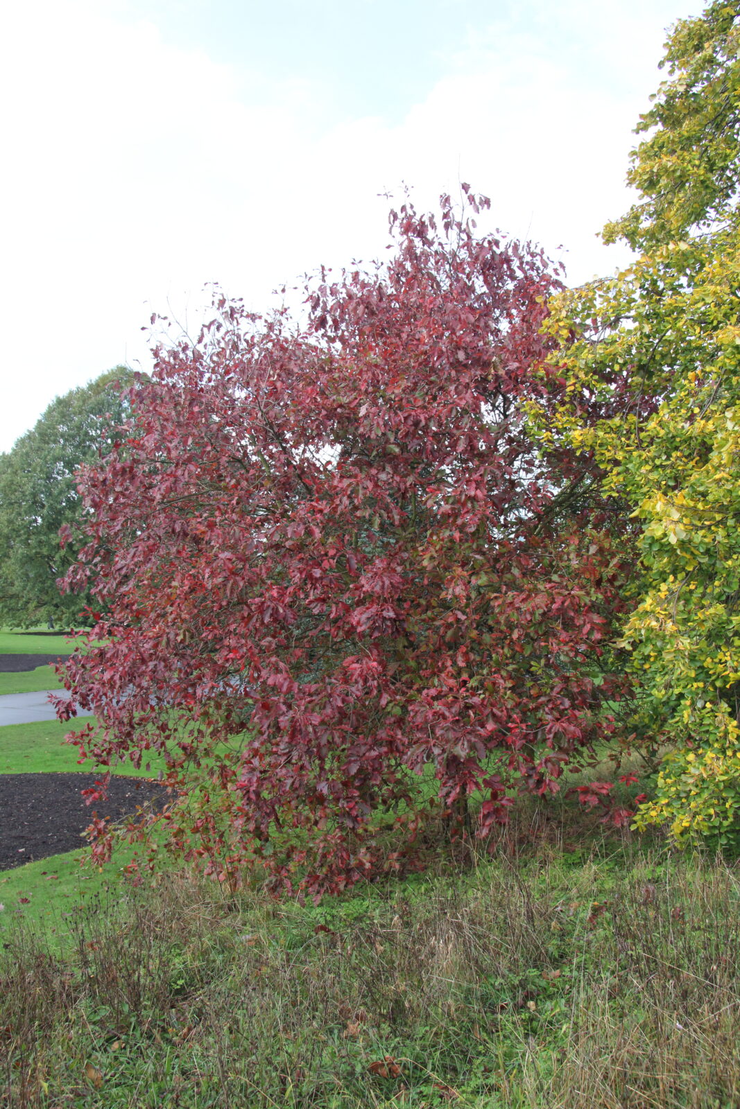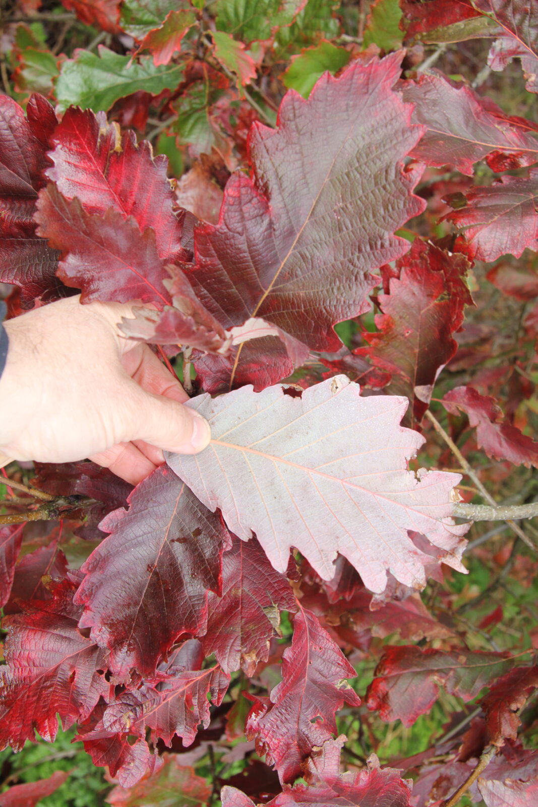 Swamp Chestnut Oak. Closely related to Quercus prinus, this hardy American species is rarely seen or offered in the UK and is best grown here where summers are reasonably warm, i.e. not Scotland, upland or coastal. Handsome, bold foliage is obovate and shallowly but coarsely toothed, rich-green with a paler underside and turning to deep yellow or, in my experience, rich-red in autumn. Though much larger in the wild, it makes a medium sized tree in the UK.