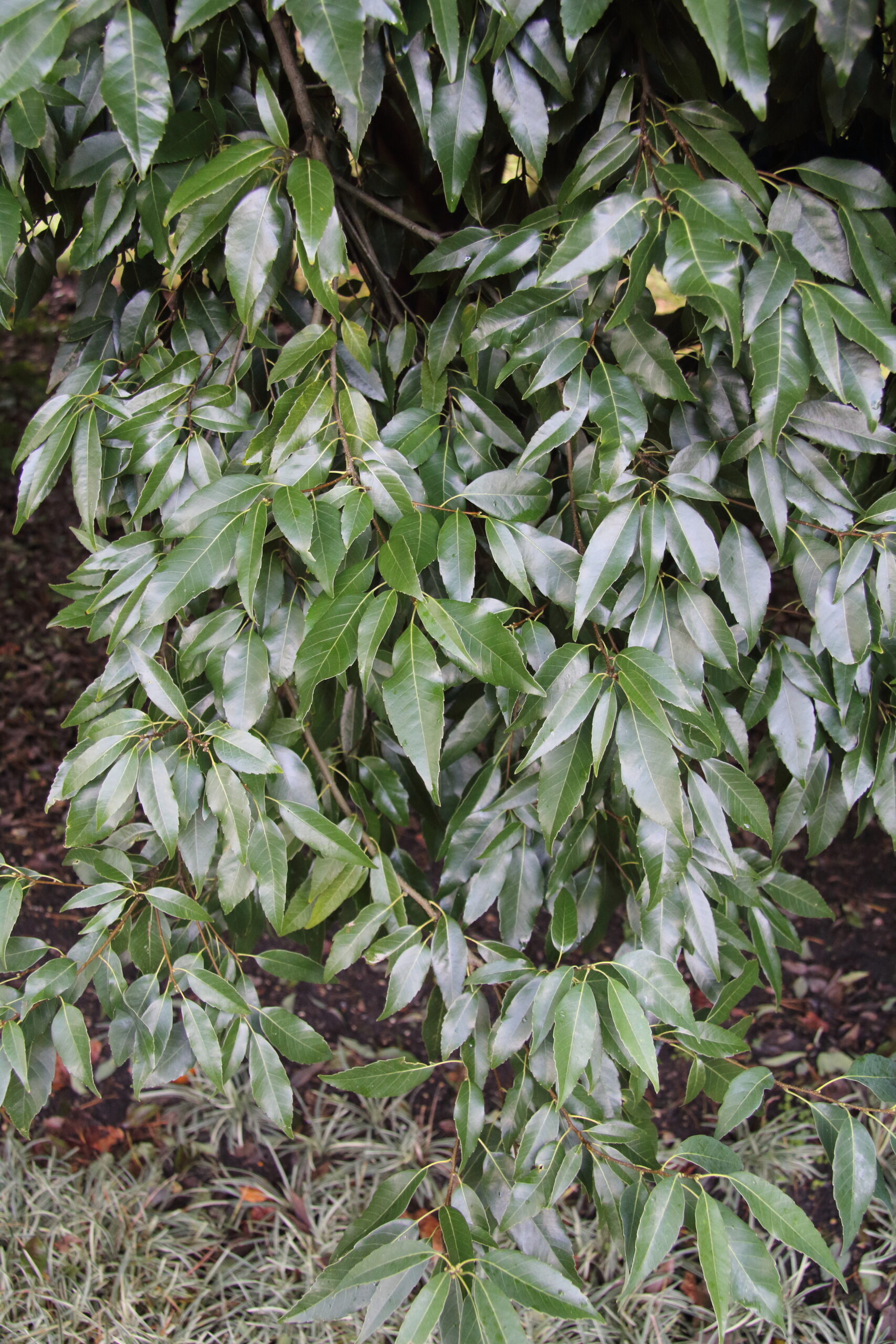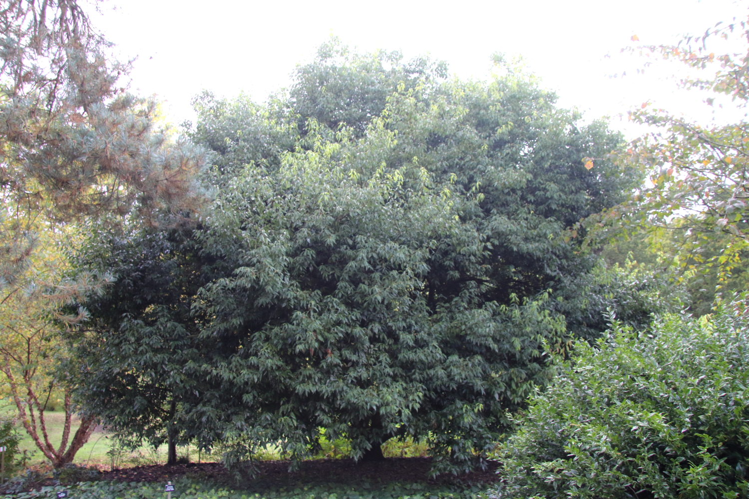 This Far Eastern evergreen oak is one of the hardiest members of the Cyclobalanopsis section (Ring cup oaks) and makes a medium sized tree in the UK, up to 18m tall at full maturity, after many decades in a good site. The crown is full, dense and rounded and the foliage is slim and willowy, dark green above and slightly grey-green beneath, emerging richly red tinted. A lover of heat, though not a prerequisite for good growth, and remarkably drought tolerant considering its origin, making it well suited to a warming and drying UK climate. For neutral to acid soil.