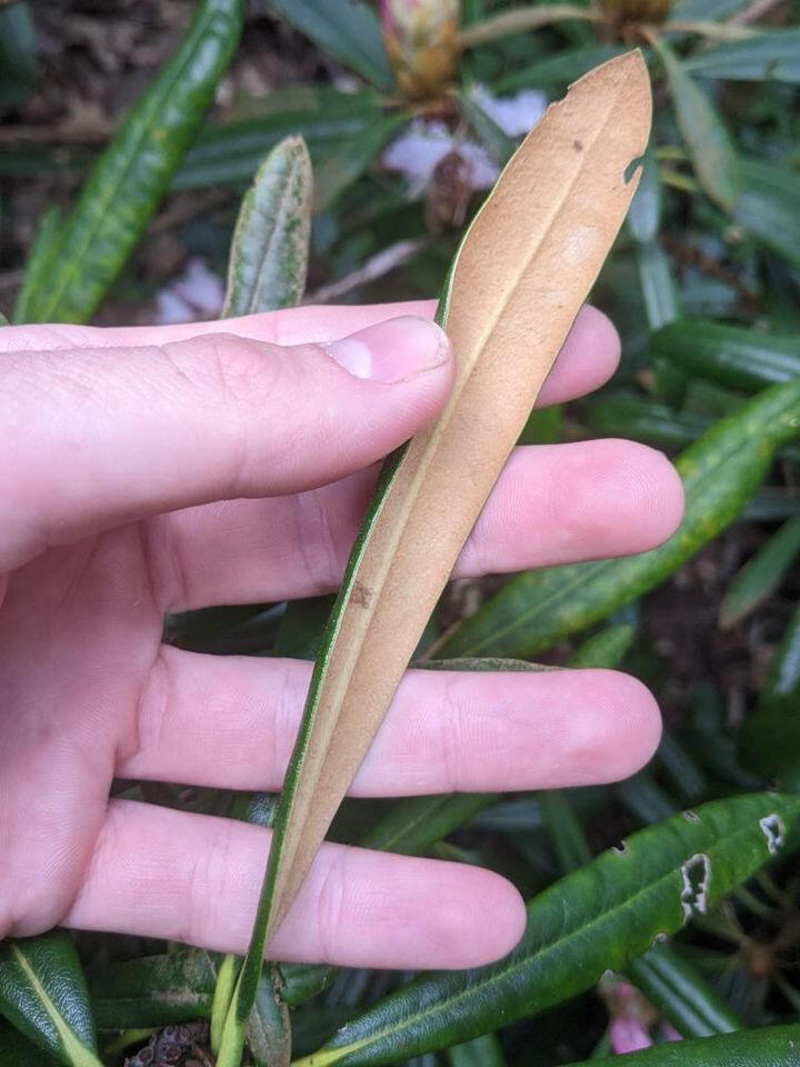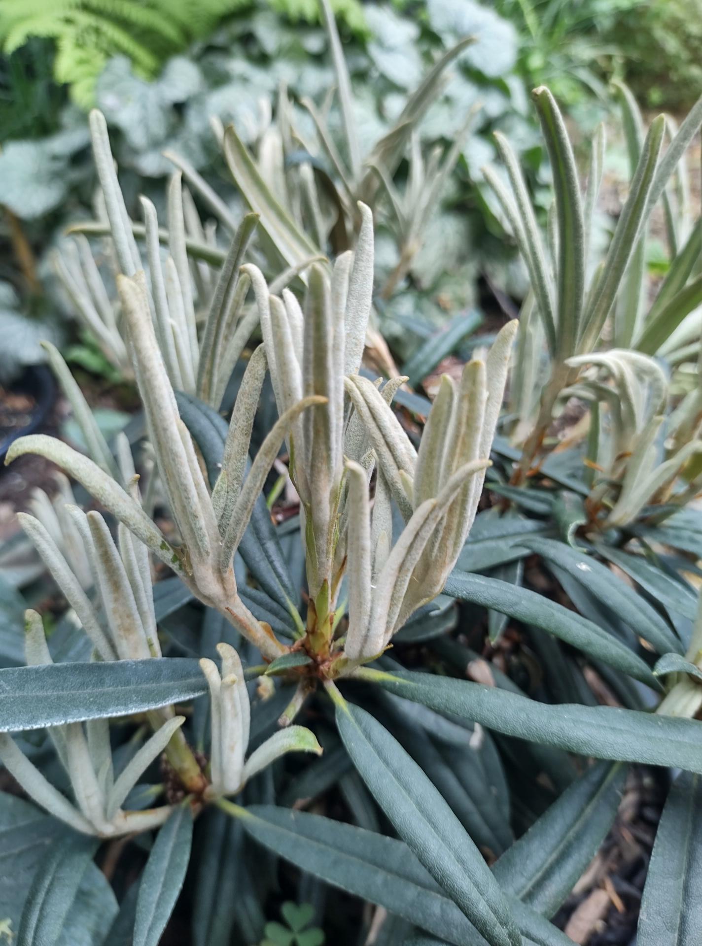 This very hardy compact Japanese evergreen species is one of the best in the genus for foliage and this selected form has particularly narrow elegant leaves, emerging covered in a white to tawny-woolly indumentum, turing to a deep green, densely fawn-woolly beneath. Trusses of soft-pink bell-shaped flowers in June. A medium sized shrub at maturity, but approx' 1m tall after 10 years or so, for acid soil in semi-shade, or full sun in cooler regions. Holds an AGM from the RHS.