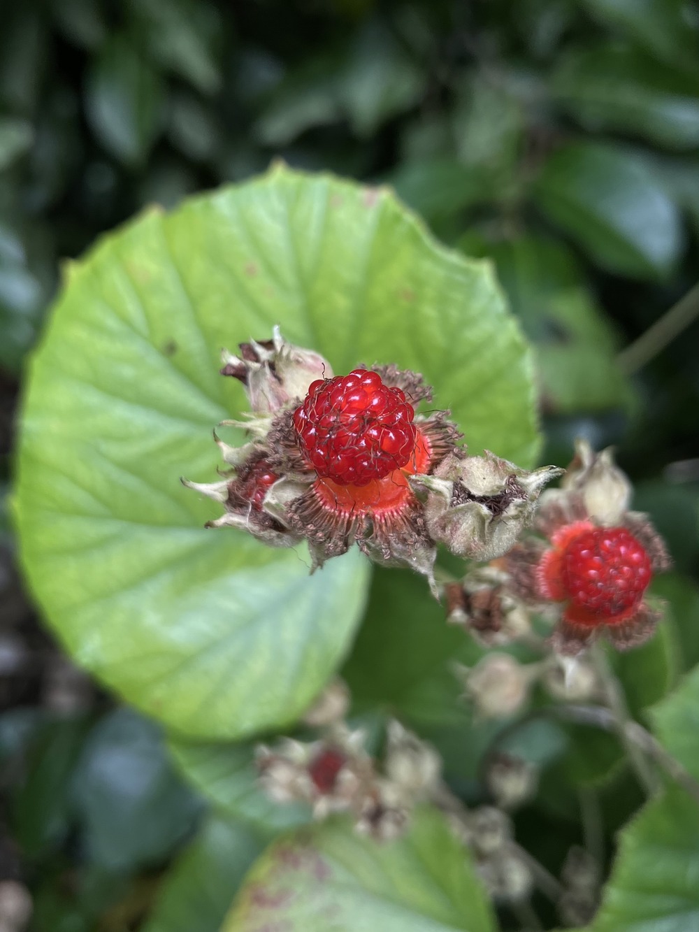 A rather bold looking low growing Chinese species, used wisely as a ground cover in shady areas. The broad rounded evergreen foliage with a subtle metallic lustre is beige felted beneath and sometimes over 15cm across on slender pale grey downy stems. White flowers in summer followed by large, edible, fairly sweet deep-red fruit. Hardy. Height generally about 50cm but can be taller if supported.