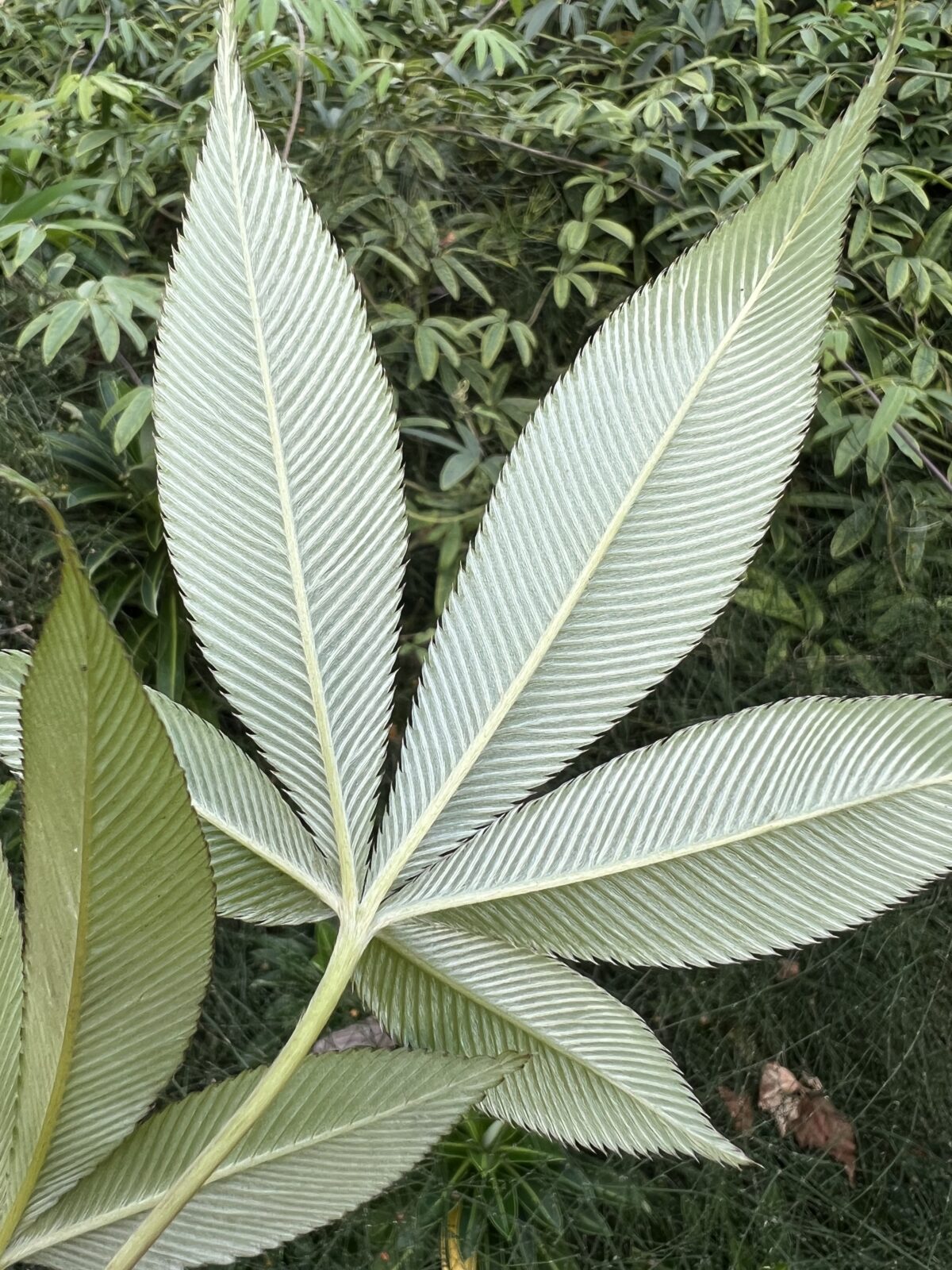One of the finest of foliage plants, with extremely attractive leaves in the style of a Schefflera, but with the 5 leaflets conspicuously and densely parallel veined, green above and shining, silvery, silky beneath. A virtually spineless, multistemmed semi-evergreen shrub to approximately 2m tall, for a sheltered corner, with white flowers in summer followed by tasty orange 'raspberries' in autumn. It has a wide wild range and this is the hardiest form.