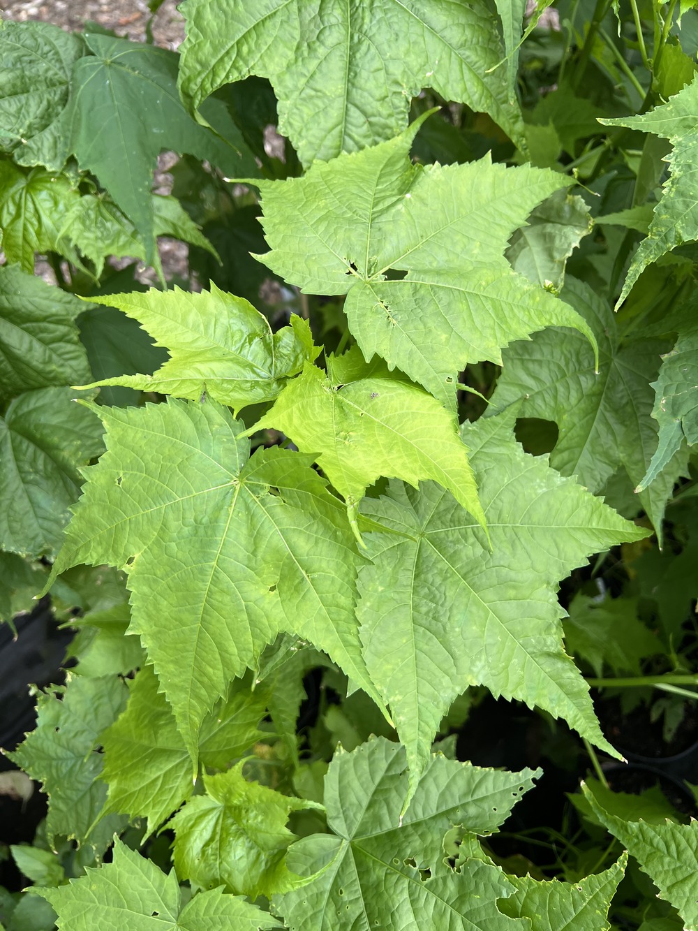 A magnet for bees, this giant mallow relative from Eastern North America offers exceptional bee pasture and high honey yields. The Virginia mallow or Virginia fanpetals is a fast growing, potentially very tall statement plant with rather splendid maple-like foliage, deeply lobed and with drawn out tips, giving an exotic effect. Strong upright stems to 2.5m are topped in summer with heads of small white flowers rich in nectar, suitable for honey, short tongued bumble and solitary bees. Tolerant of both moist and dry soils.