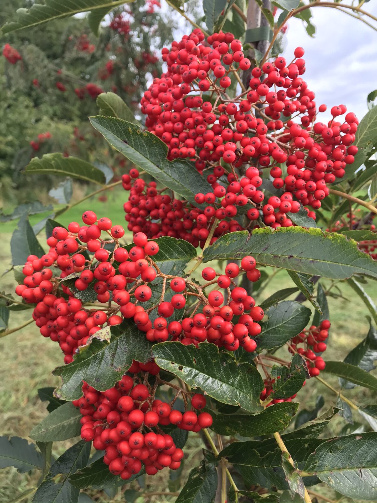 A magnificent newly described species from China, closely related to both S. sargentiana and S. wilsonii, though more attractive than either. Superb, exceptionally large shining pinnate foliage, up to 30cm by 20cm, emerges with deep red tints and turns to vivid red and orange in autumn and the very large heads of white flowers, 20cm across, turn to huge bunches of bright red fruit. A slow growing small tree.
