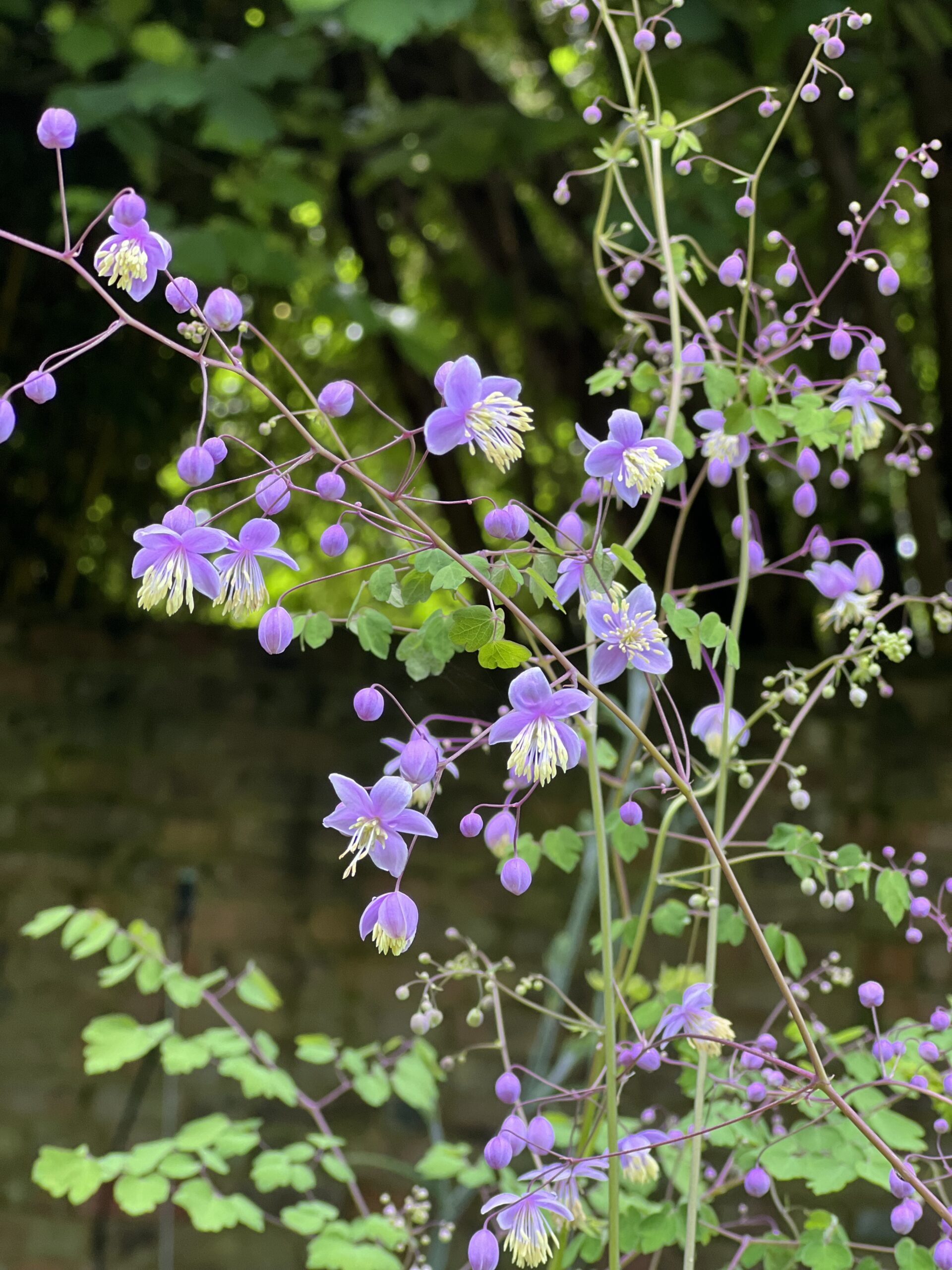 A very beautiful airy perennial held in high regard by all who know it. Delicate looking pale grey-green, ferny, much divided foliage and branched heads of many small pale lilac-pink flowers with contrasting light-yellow stamen in late summer. Height to 1.5m. Sun or part shade, but best in a cool sheltered place where it is gently supported by other tall things. Hardy. Suited to not overly dry fertile soil.