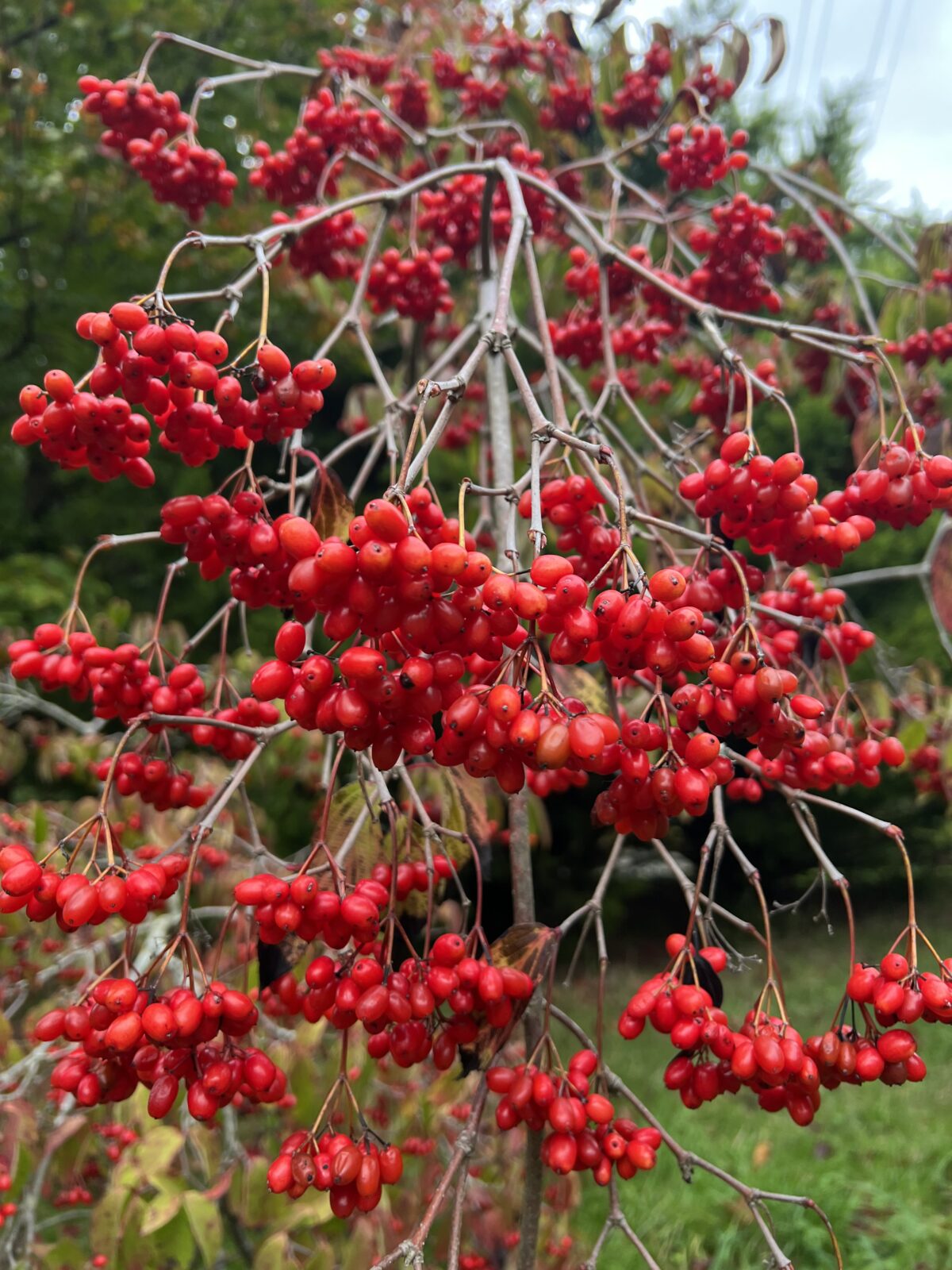 A fine shrub with many attractive features, though rarely encountered in gardens or trade. A medium sized deciduous species with an open habit; the foliage emerging metallic blue-red-green, turning through shades of green and then finally orange-red in autumn. Clusters of juicy, orange-red berries, turning scarlet, follow the white early summer flowers. Hardy and easy in most soils and situations.